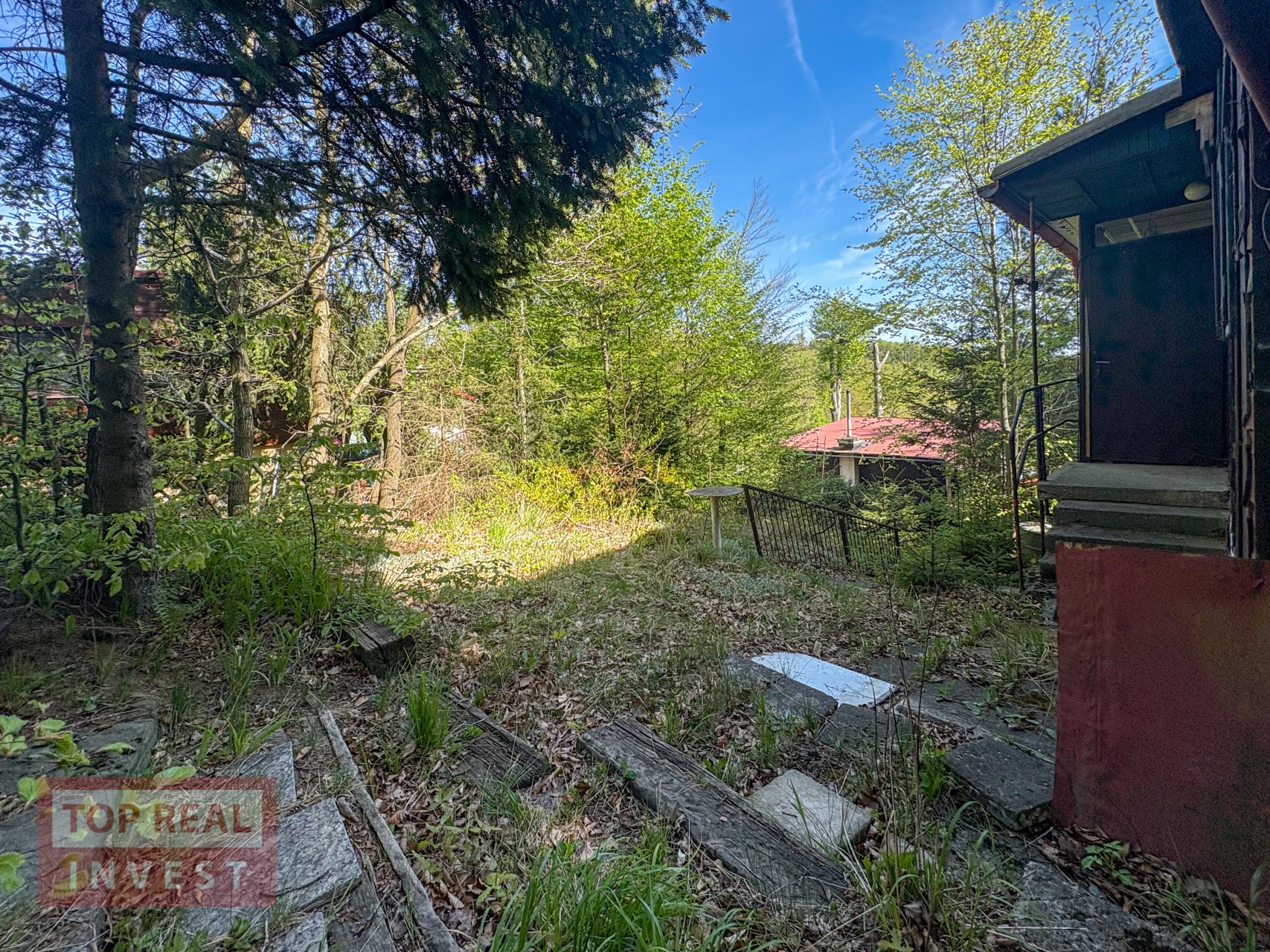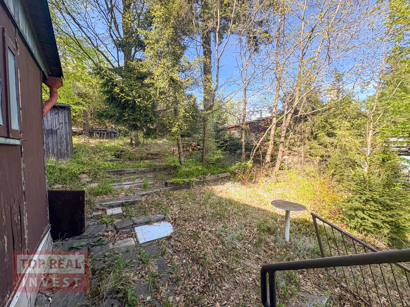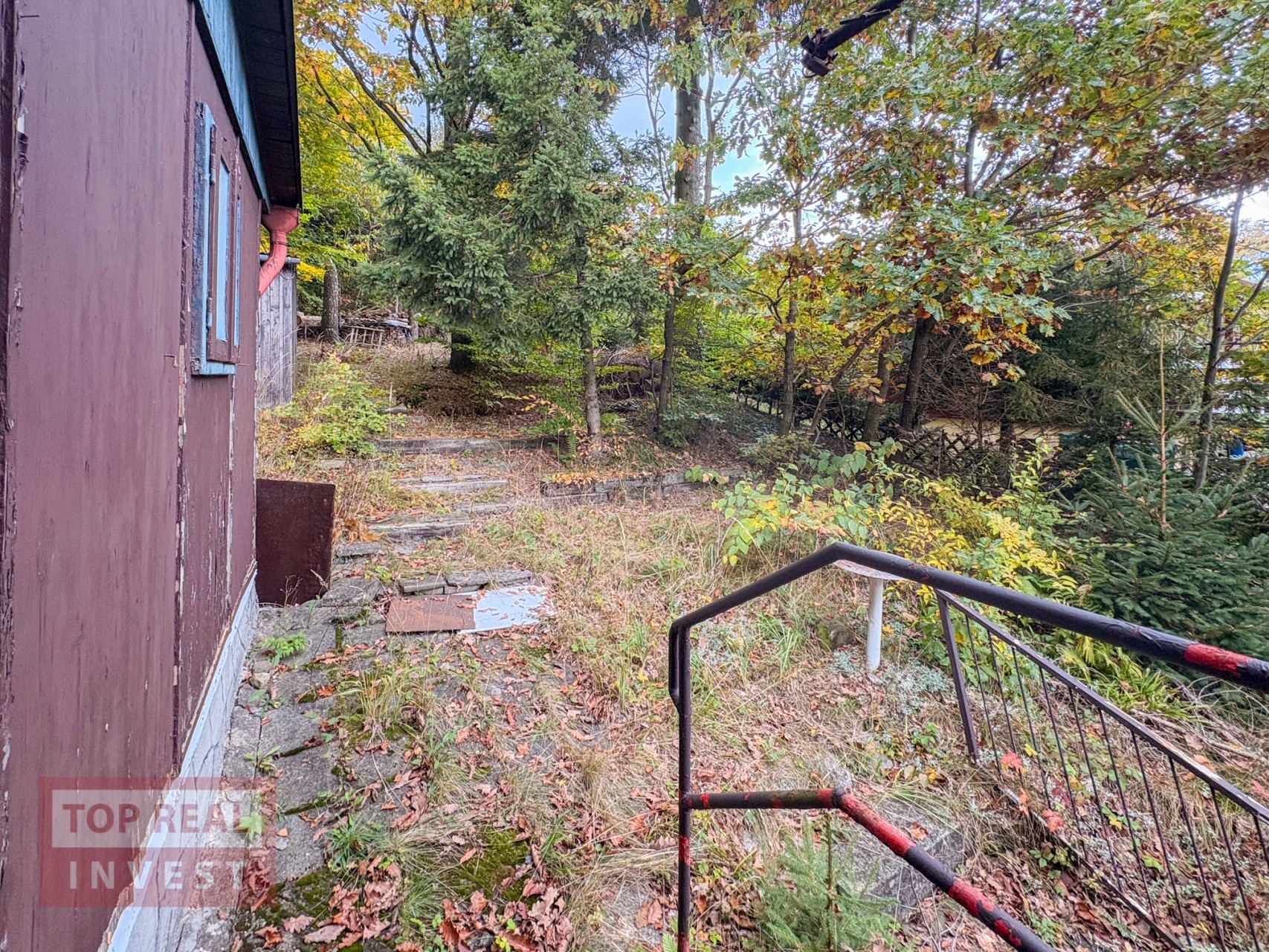 Na pozemku u chaty je vydlážděná část pro posezení a jsou zde vzrostlé stromy a keře. Pozemek je hezký, ale potřebude pravidelnou údržbu, stejně tak i chata si zasloží modernizaci, aby splňovala komfort pro dnešní dobu.