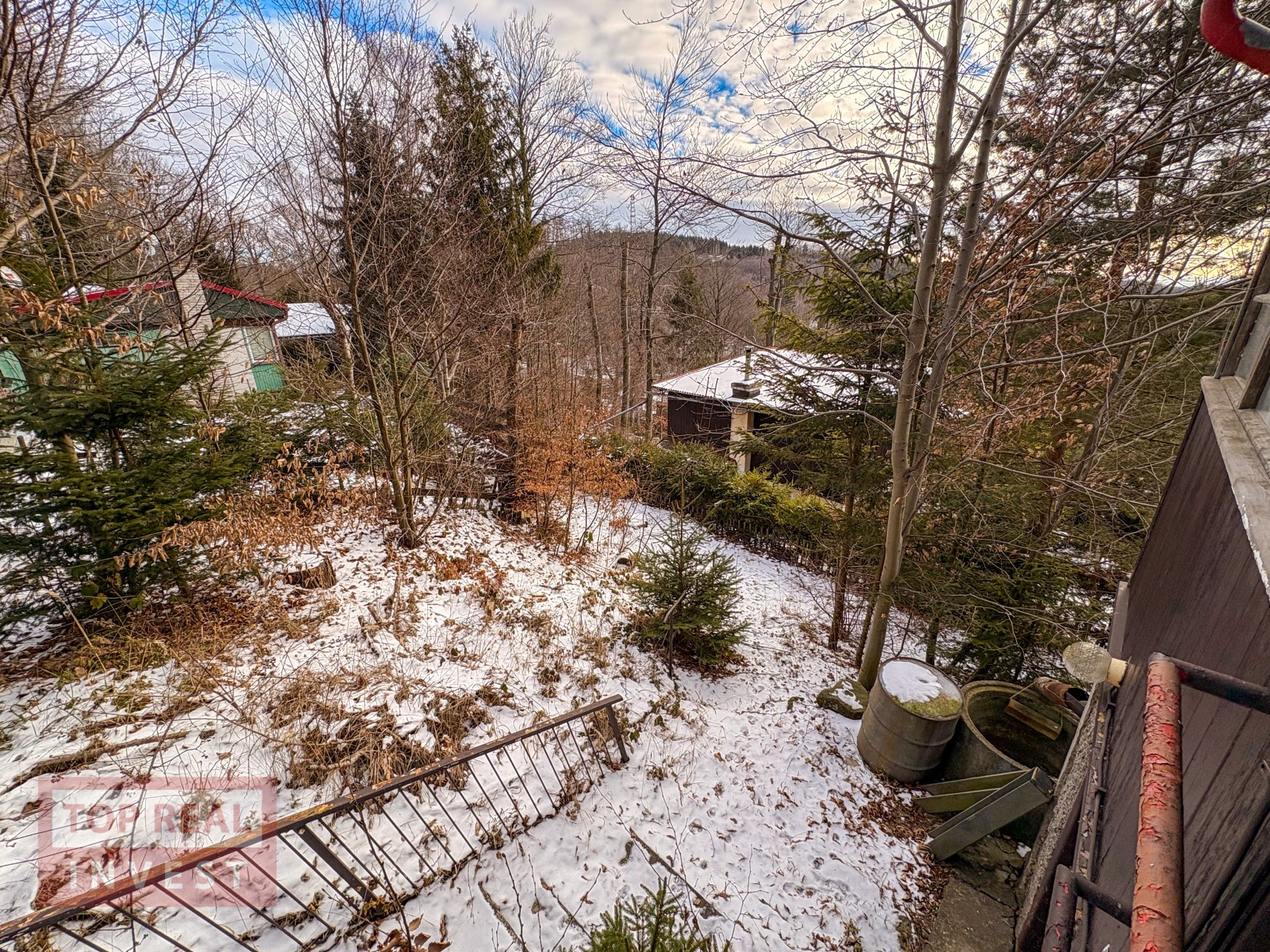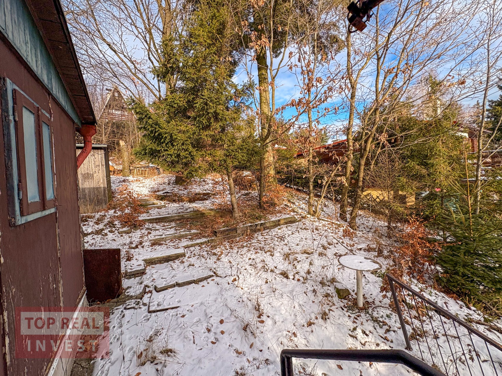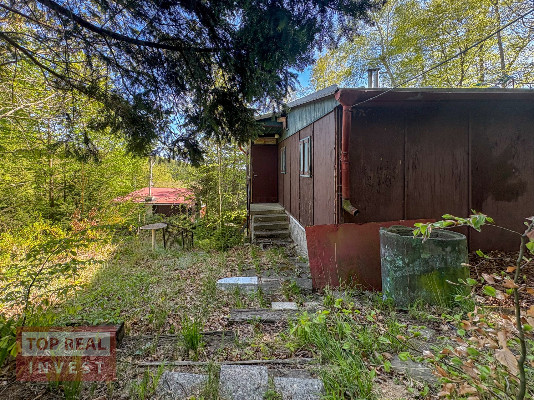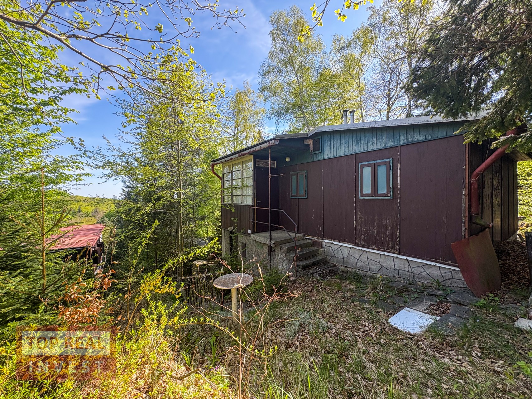 Na pozemku u chaty je vydlážděná část pro posezení a jsou zde vzrostlé stromy a keře. Pozemek je hezký, ale potřebude pravidelnou údržbu, stejně tak i chata si zasloží modernizaci, aby splňovala komfort pro dnešní dobu.