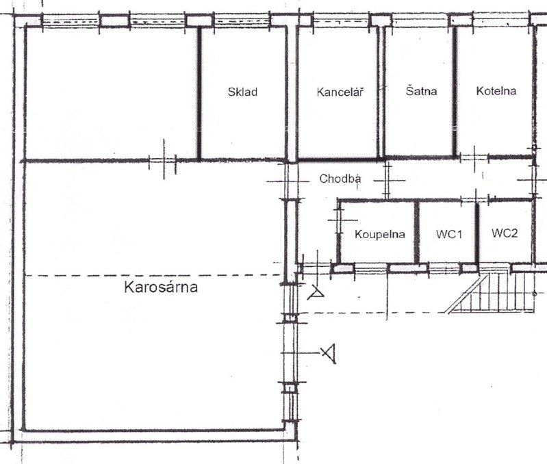 Tato strategická poloha zajišťuje perfektní dopravní dostupnost, jelikož Holešov - Všetuly se nachází pouhých 6 km od nájezdu na dálnici D1, a je výborně dosažitelný jak autem, tak i veřejnou dopravou.Prostor je v dobrém stavu, umístěný z boční strany budovy s možností zaparkování před prostorem. Je určen k podnikatelským aktivitám, jako je karosárna, obchod, skladování nebo služby. Prostor 1, v 1. NP, 198,9 m2 sestává z dílny, karosárny, skladu, chodby, kanceláře, šatny, kotelny, sociálního zázemí. Dále je v jednotce plynový kotel a plynový zásobník, 2x WC, 2x umyvadlo, 2x sprcha, vstup vraty a dveřmi do dvora.
