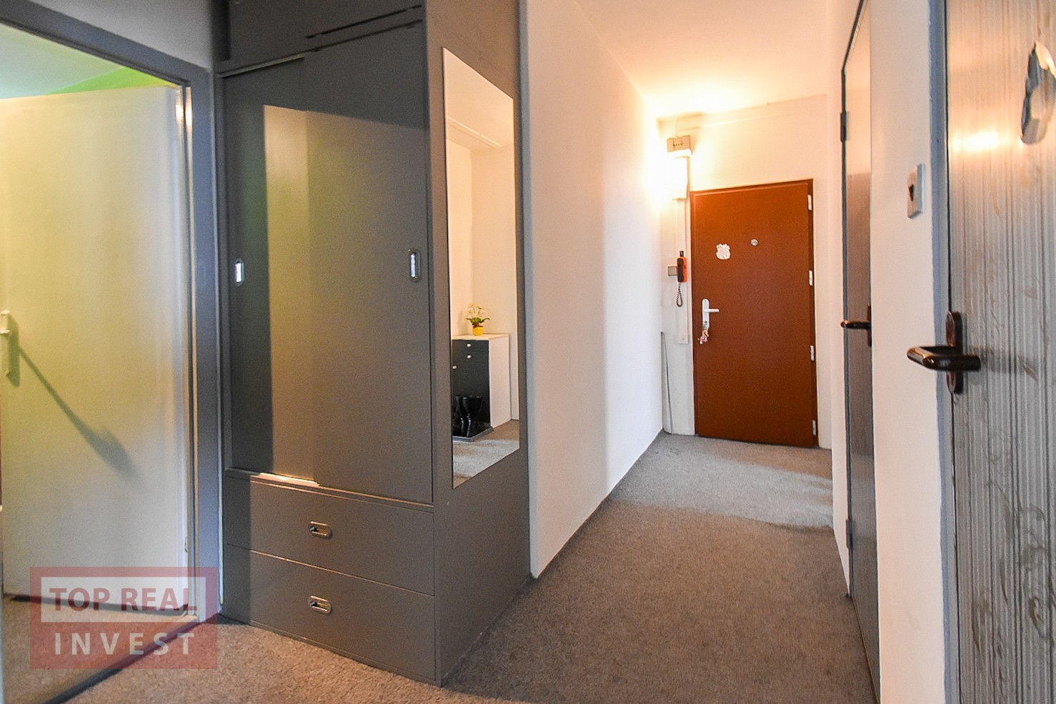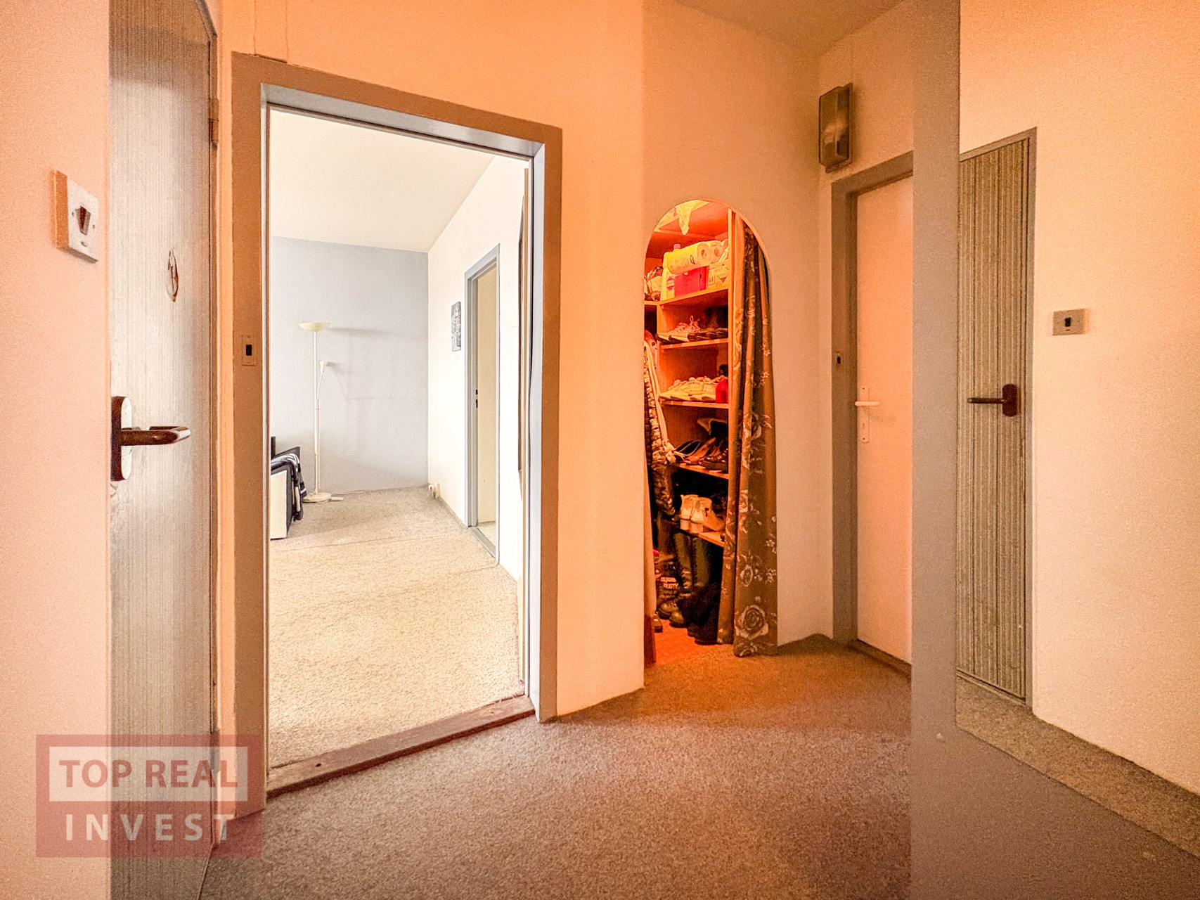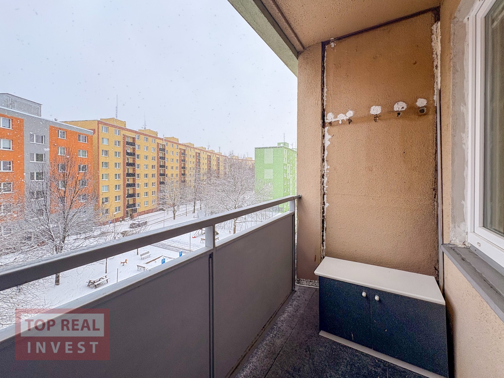 Dispozice bytu je praktická a funkční. Nabízí neprůchozí ložnice – jeden pokoj je přístupný z chodby, druhý navazuje na prostorný obývací pokoj. Na chodbě se nachází vestavěná skříň poskytující dostatek úložného prostoru. Kuchyň do tvaru písmene U, nabízí dostatek prostoru pro pohodlné vaření. Součástí bytu je také lodžie s výhledem do parku před domem. Byt je v původním, avšak velmi udržovaném stavu a nabízí skvělý základ pro moderní rekonstrukci dle vlastních představ.