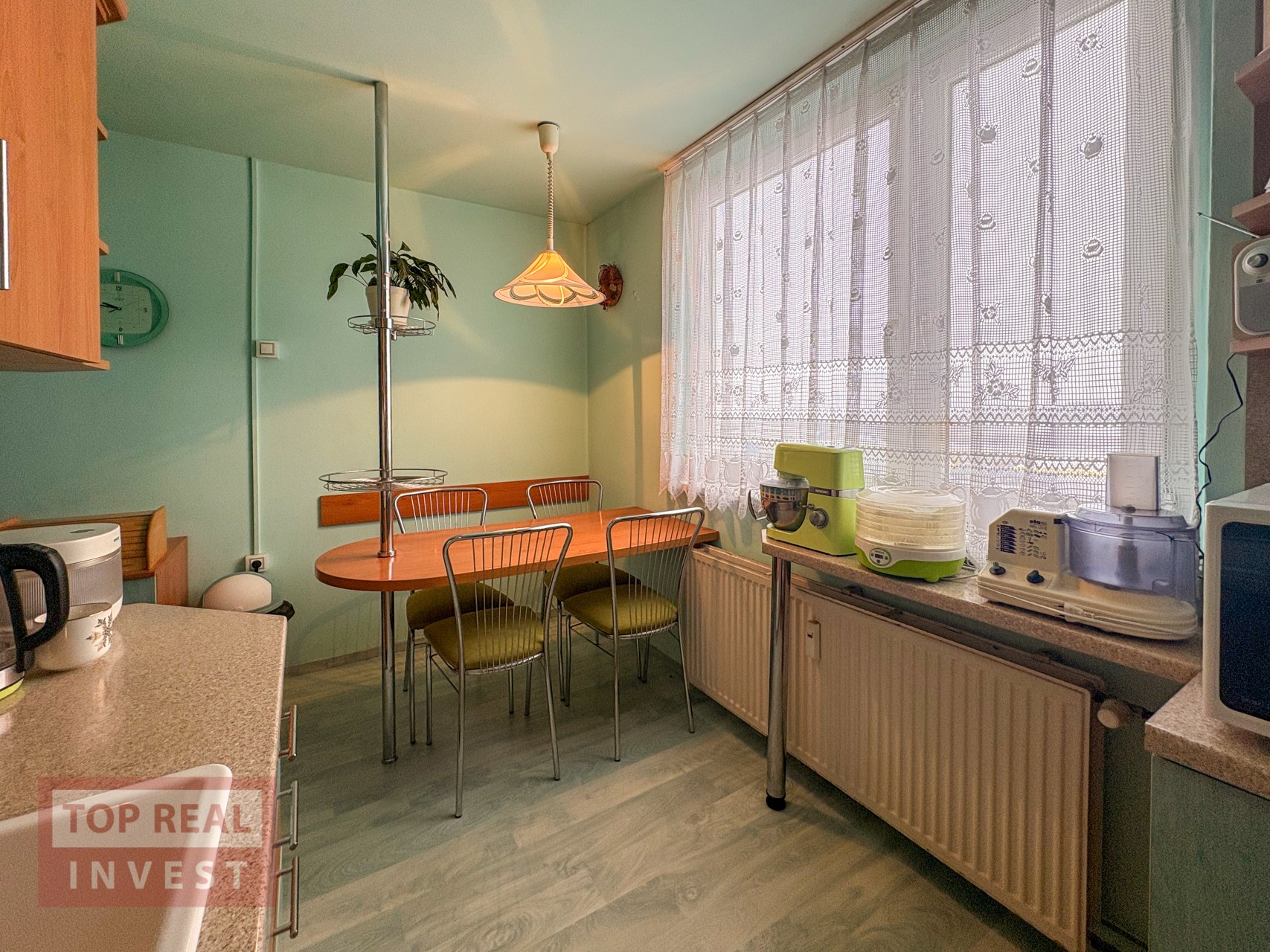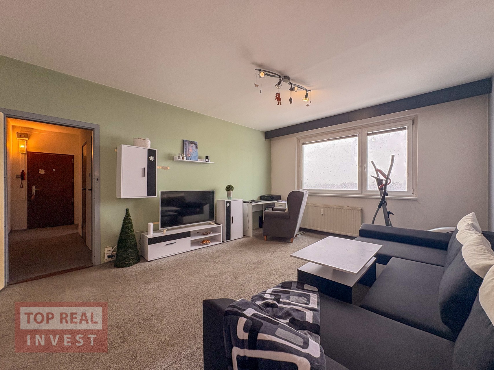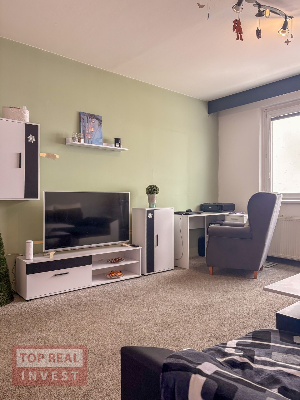 Dispozice bytu je praktická a funkční. Nabízí neprůchozí ložnice – jeden pokoj je přístupný z chodby, druhý navazuje na prostorný obývací pokoj. Na chodbě se nachází vestavěná skříň poskytující dostatek úložného prostoru. Kuchyň do tvaru písmene U, nabízí dostatek prostoru pro pohodlné vaření. Součástí bytu je také lodžie s výhledem do parku před domem. Byt je v původním, avšak velmi udržovaném stavu a nabízí skvělý základ pro moderní rekonstrukci dle vlastních představ.