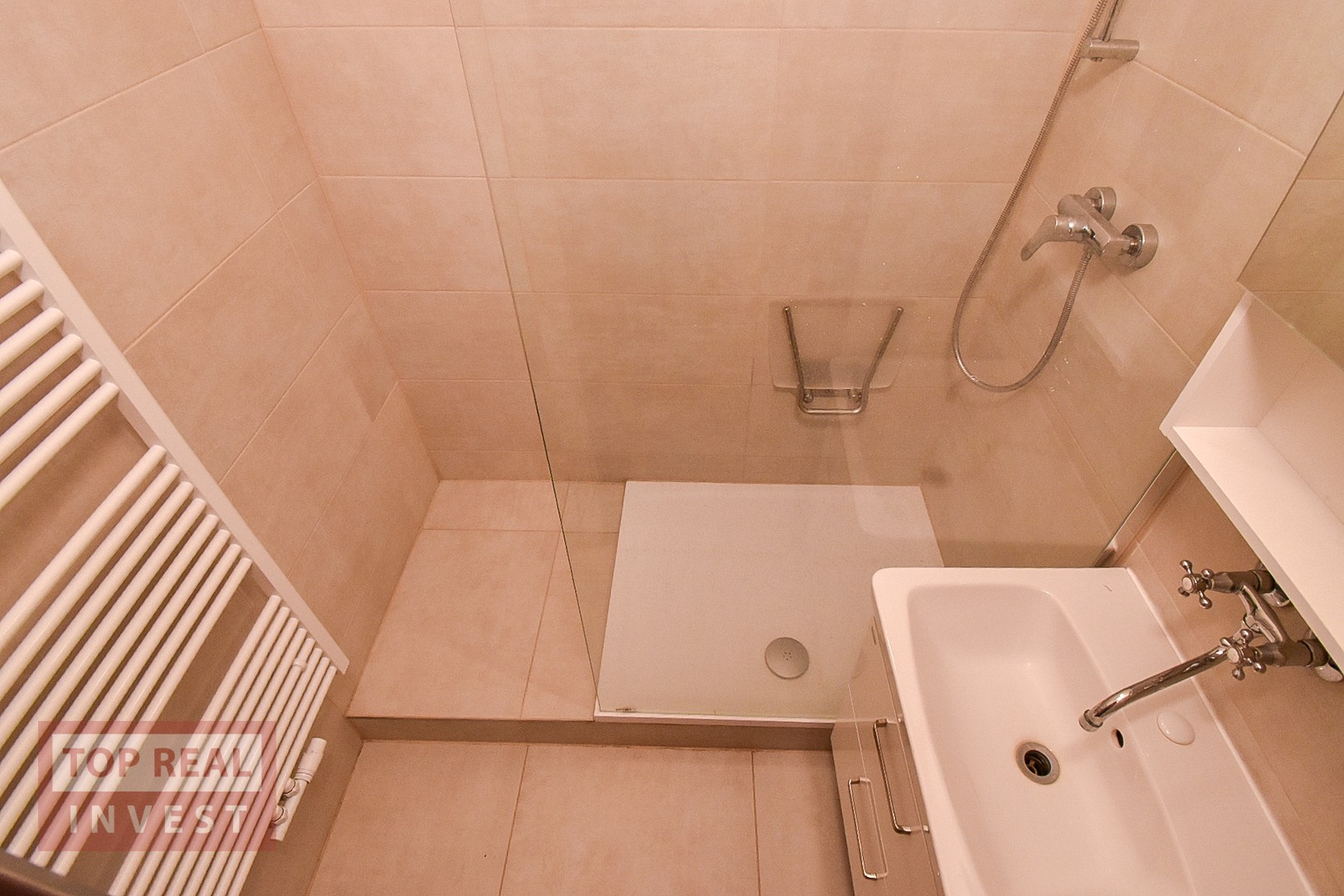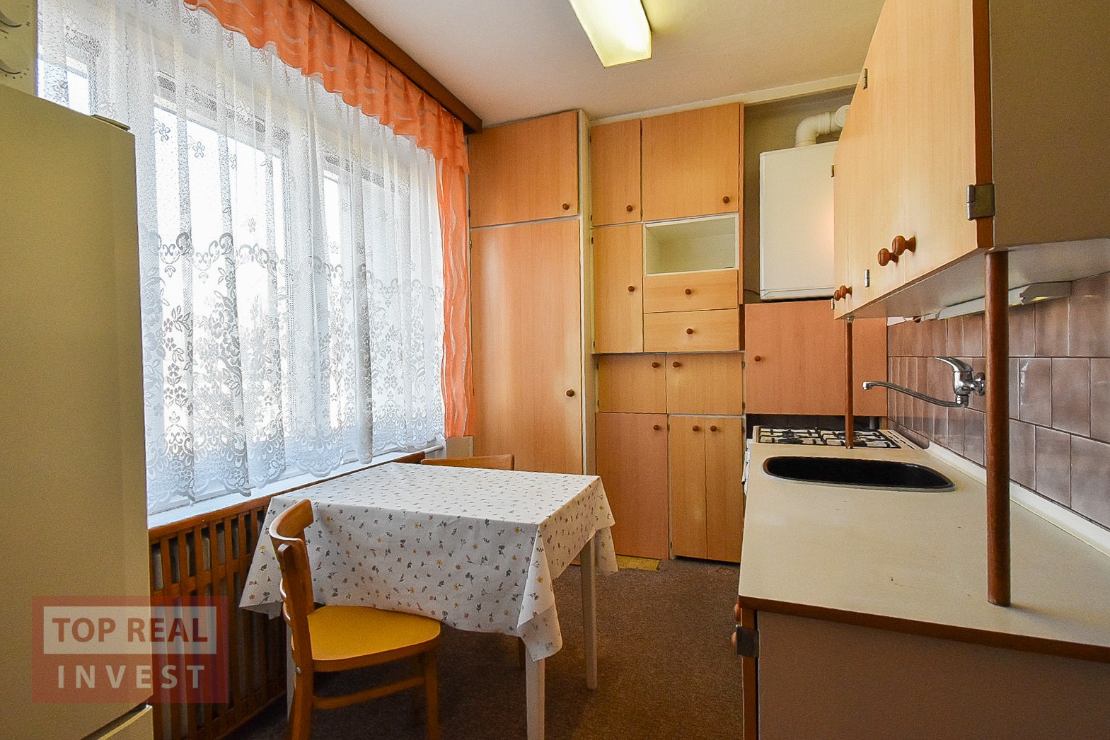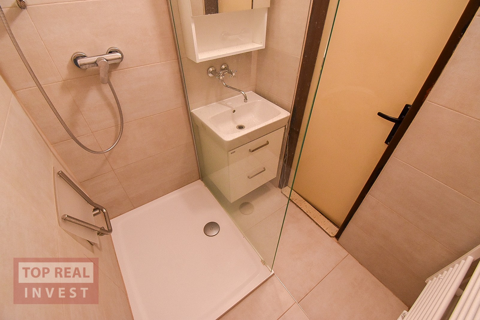 Interiér bytu je starší a působí útulně a prakticky. Byt má novou koupelnu s prostorným sprchovým koutem, WC je samostatné. Výhled je orientován jak do ulice, tak na společný pozemek za domem, což přináší příjemnou kombinaci. Byt má vlastní plynové vytápění.