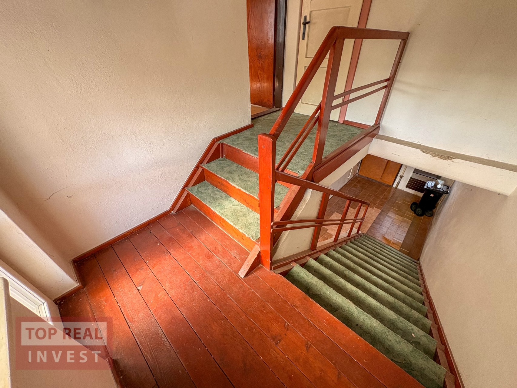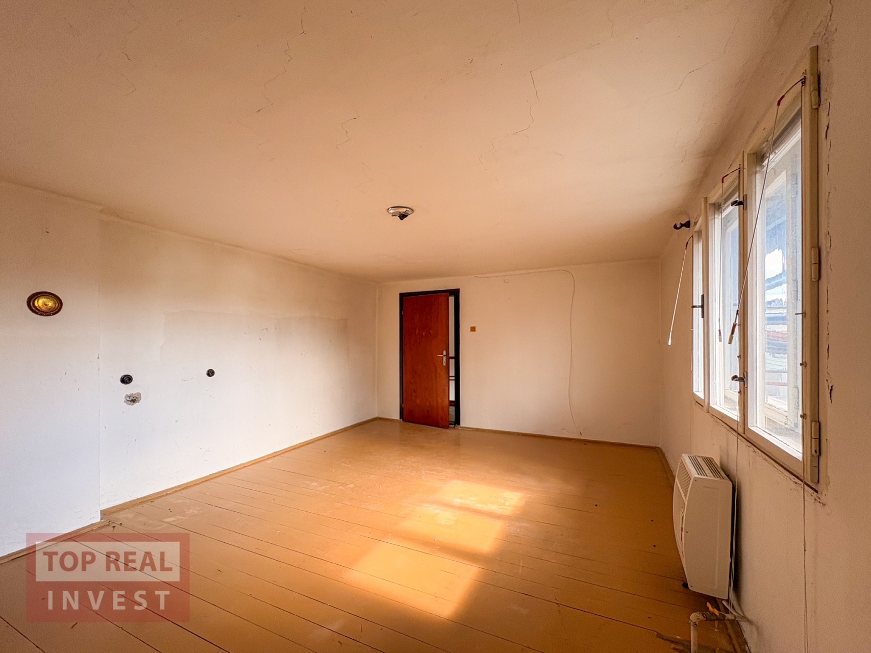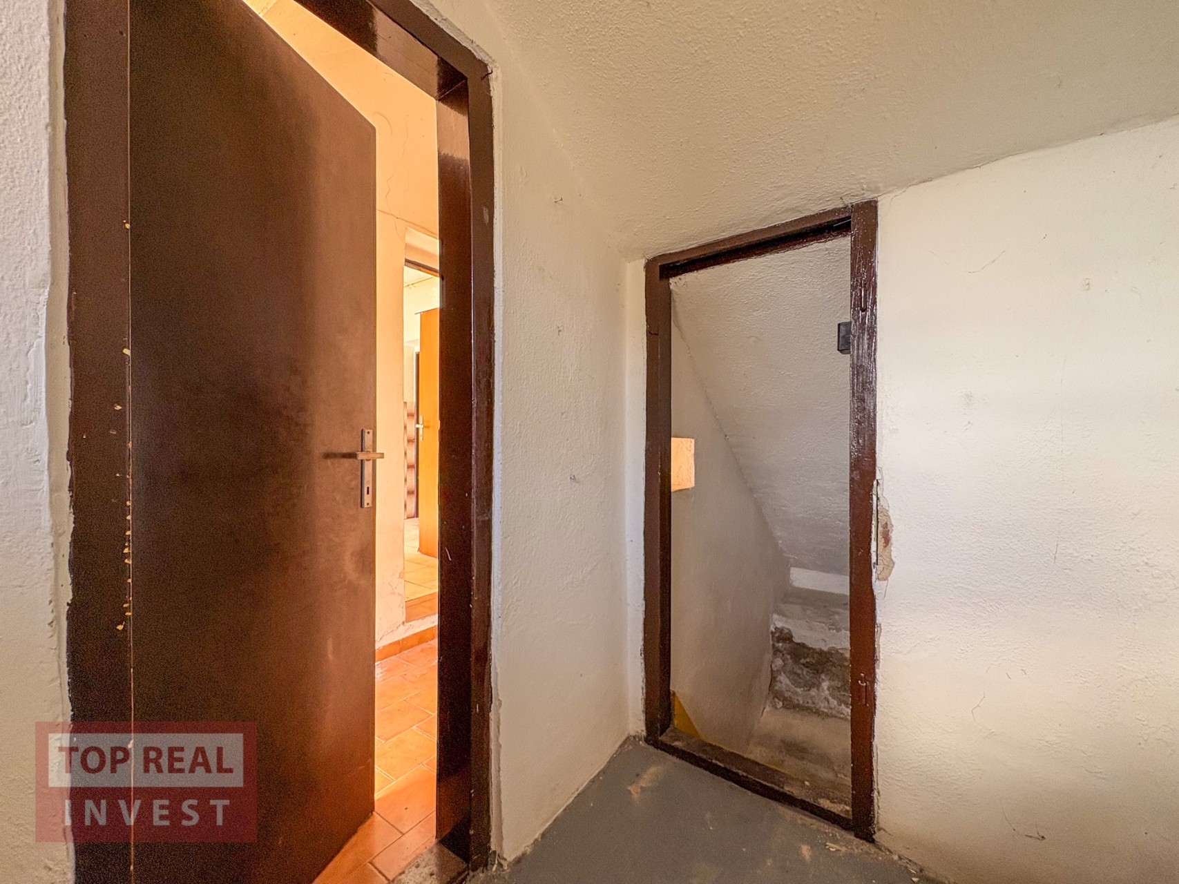 V patře najdete další prostorný pokoj s výhledem do dvora, vstup na balkón a rozsáhlou půdu, která nabízí skvělé možnosti pro rozšíření obytné části.