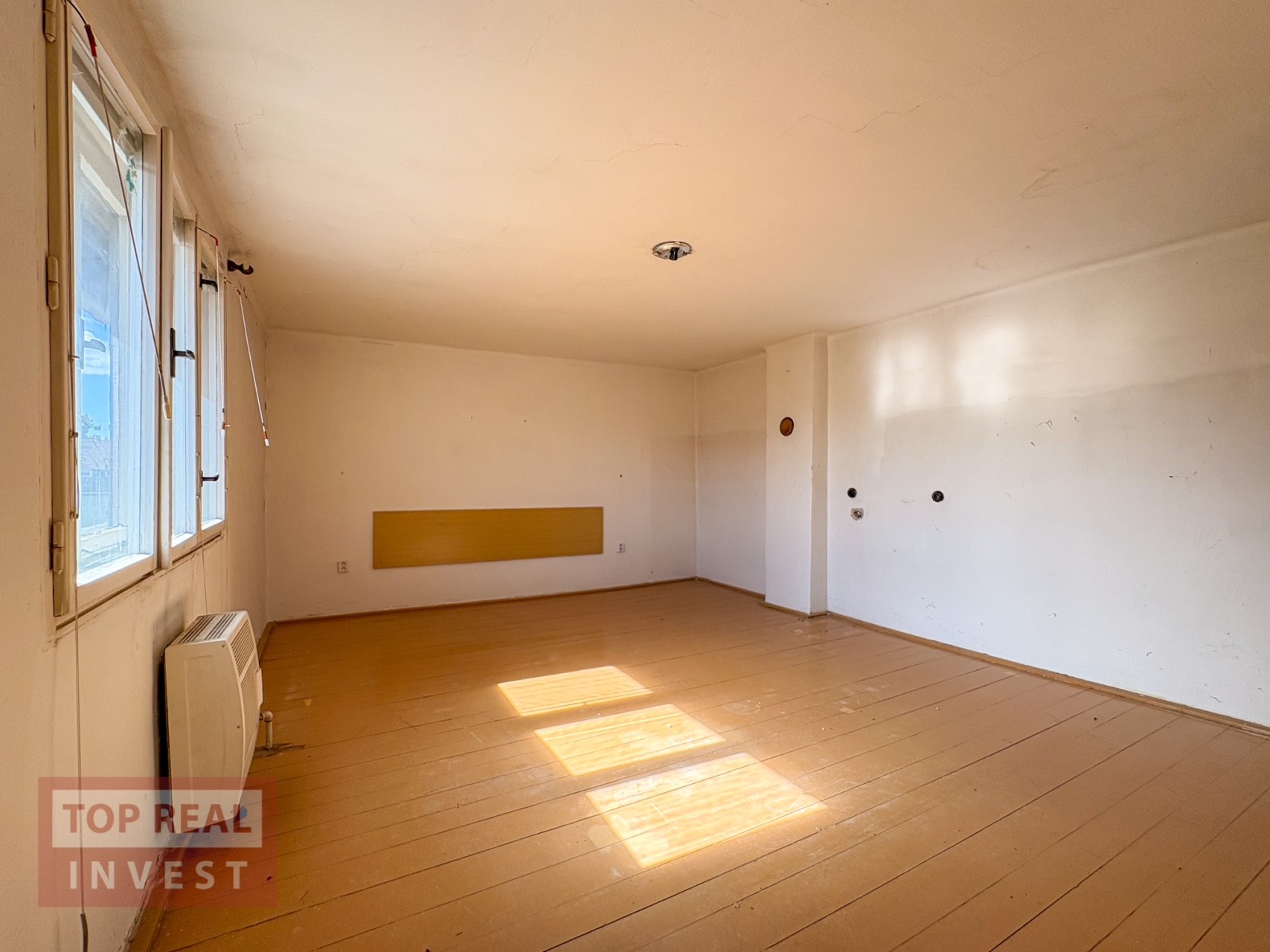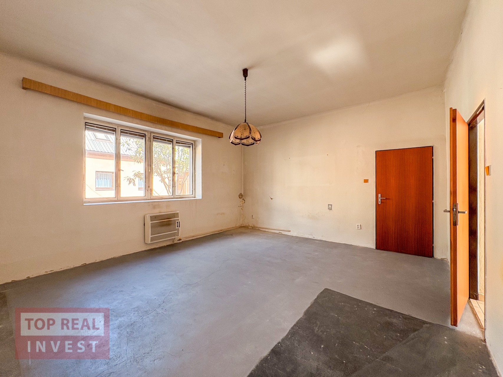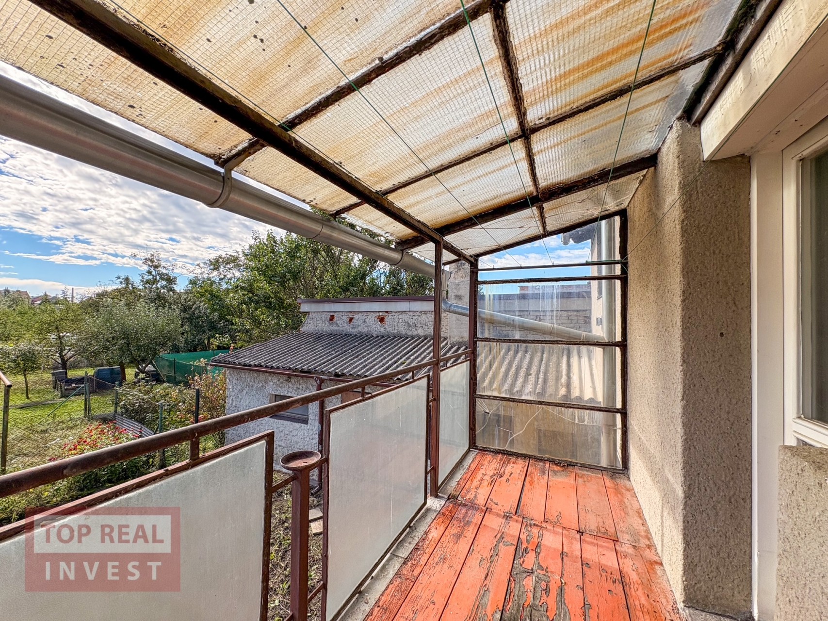 V patře najdete další prostorný pokoj s výhledem do dvora, vstup na balkón a rozsáhlou půdu, která nabízí skvělé možnosti pro rozšíření obytné části.