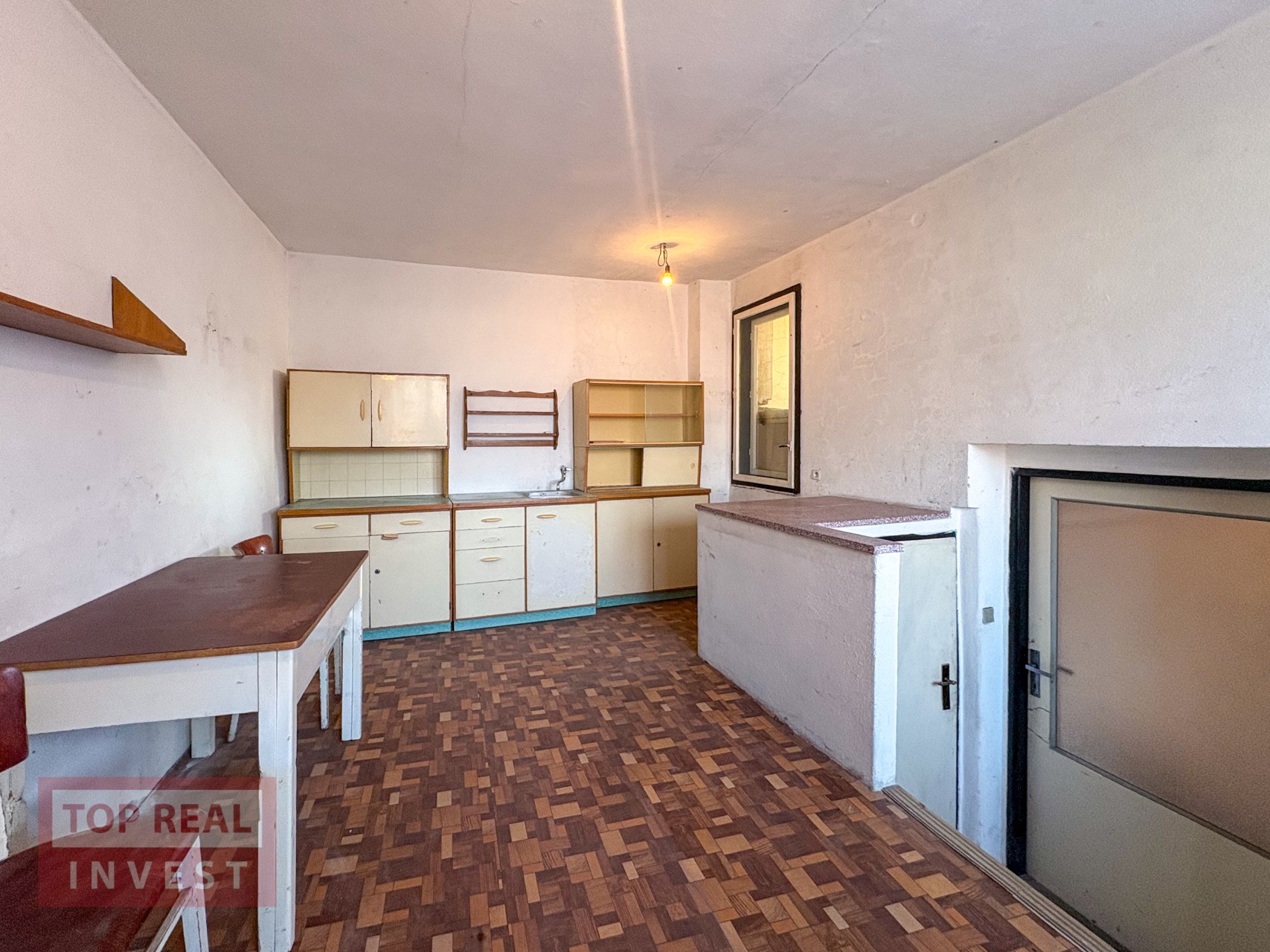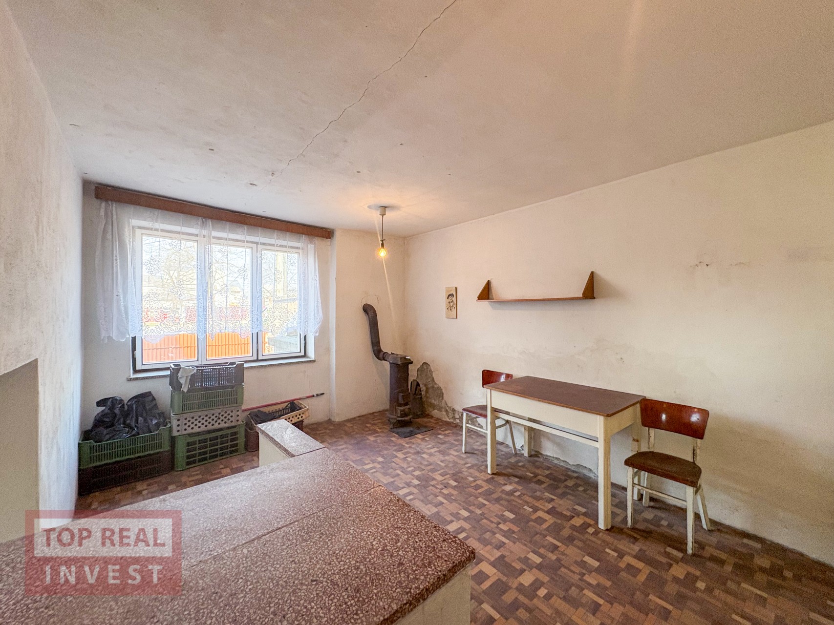 Dům je určený k rekonstrukci, ale ještě donedávna byl obývaný, takže je funkční a nabízí možnost postupných úprav podle vlastních představ.