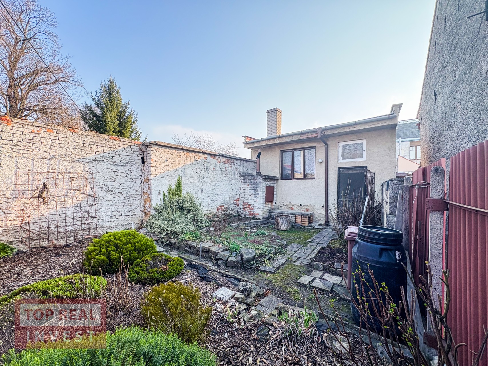 Součástí nemovitosti je také zahrádka se samostatnou stavbou, která je podsklepená. V nadzemní části se nachází místnost s kuchyňskou linkou, zavedenou vodou a kamny na tuhá paliva, což nabízí zajímavé využití například jako letní kuchyně, dílna nebo zázemí pro posezení.