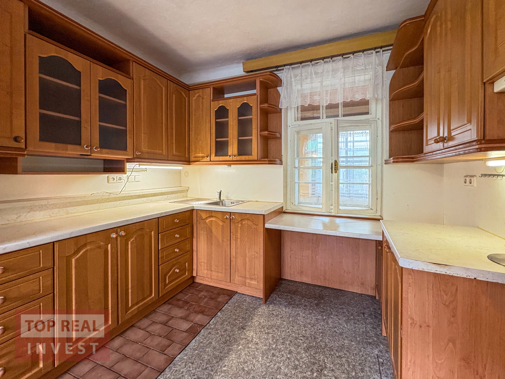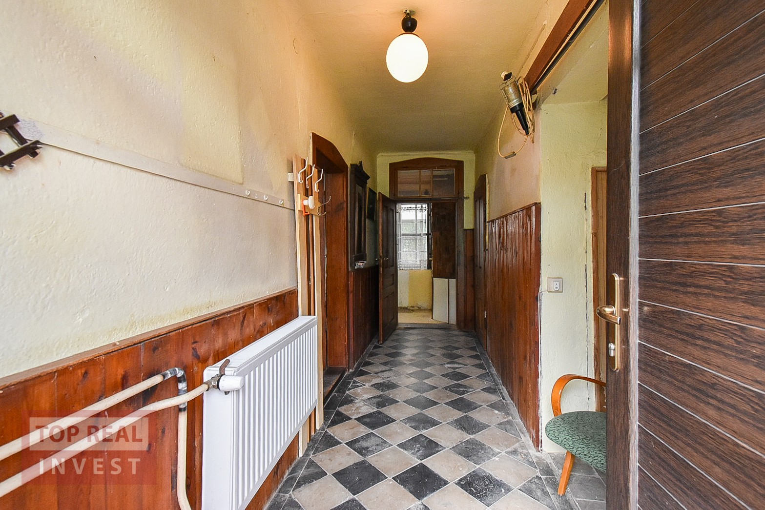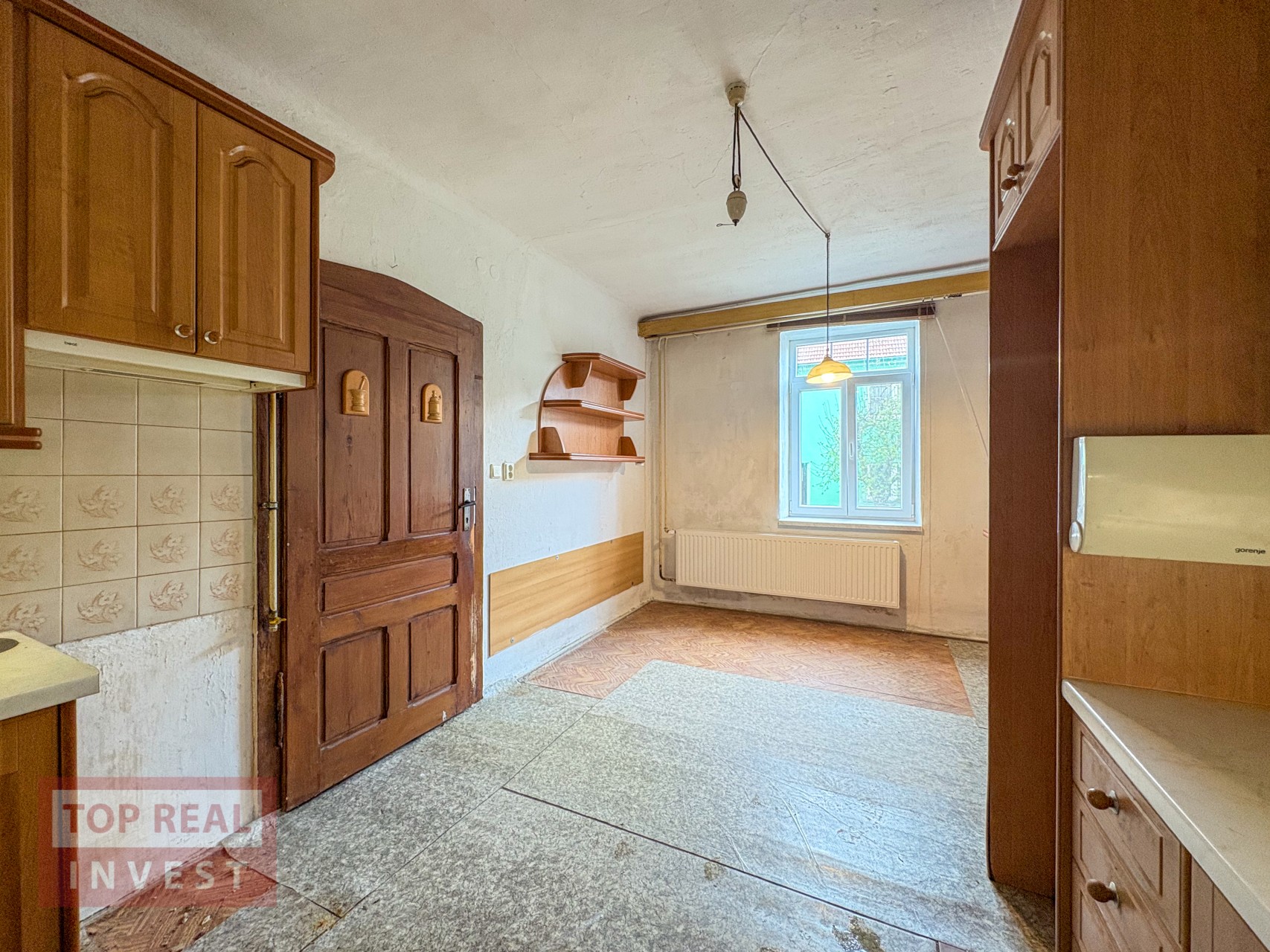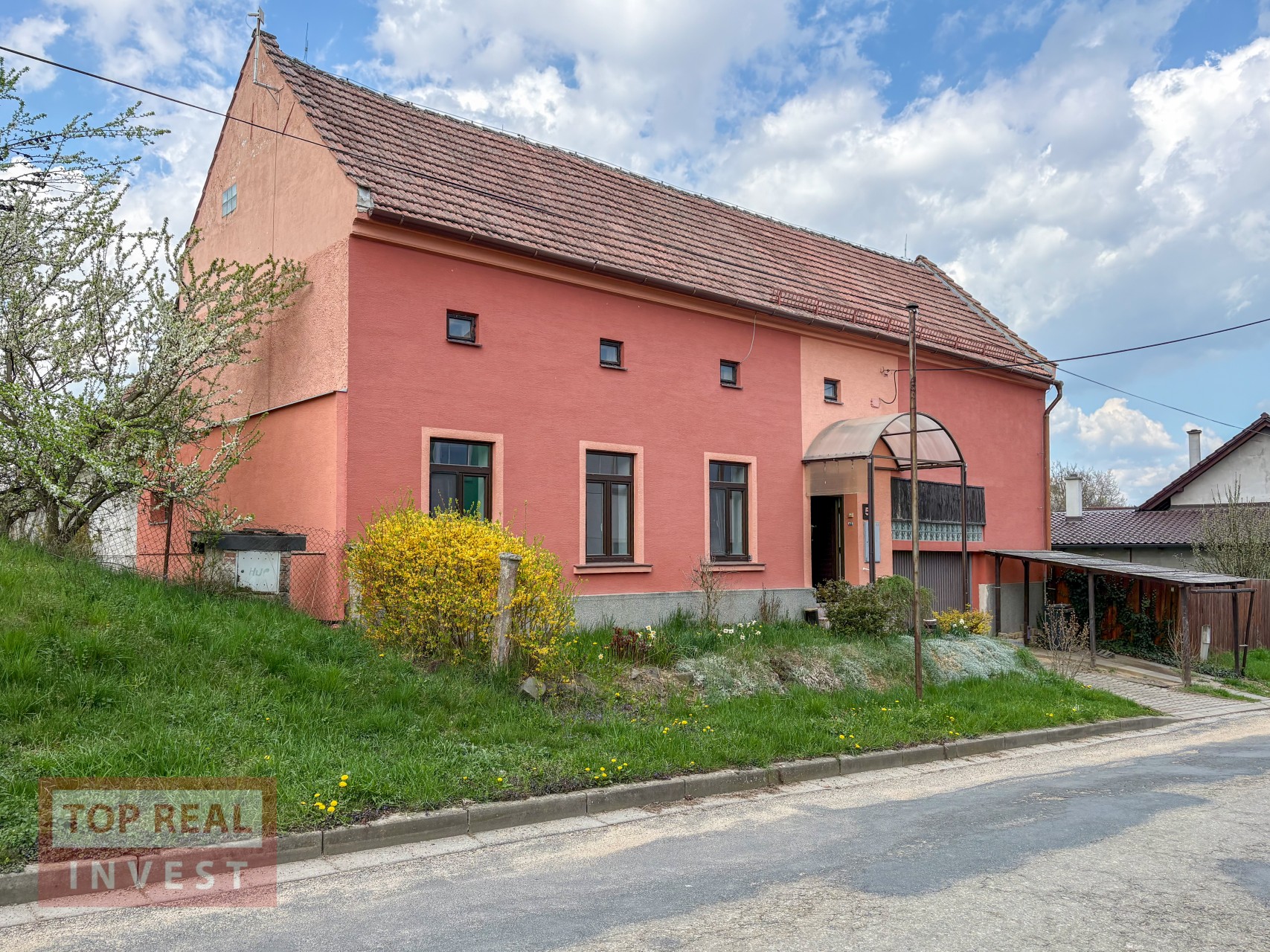 Součástí domu je také garáž s průjezdem na pozemek za domem, což je velmi praktické řešení. A studna, která byl používána na zalévání zahrady.