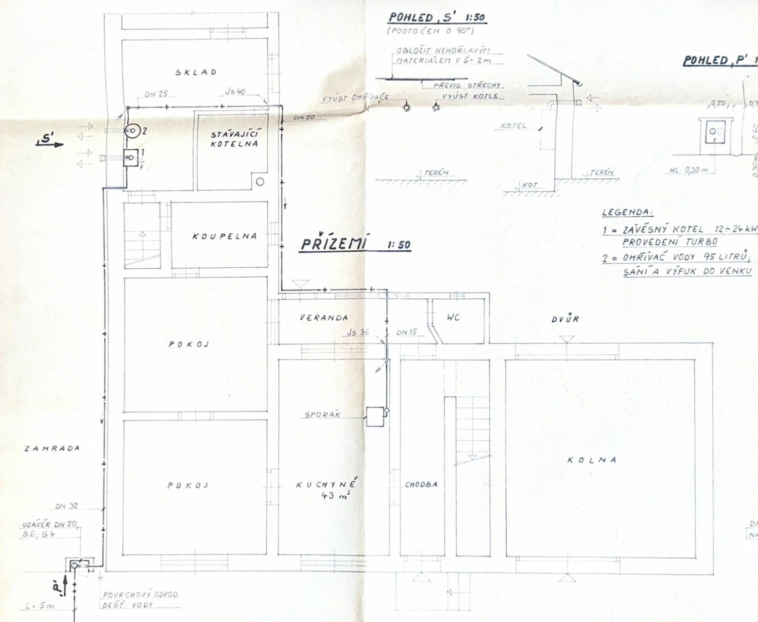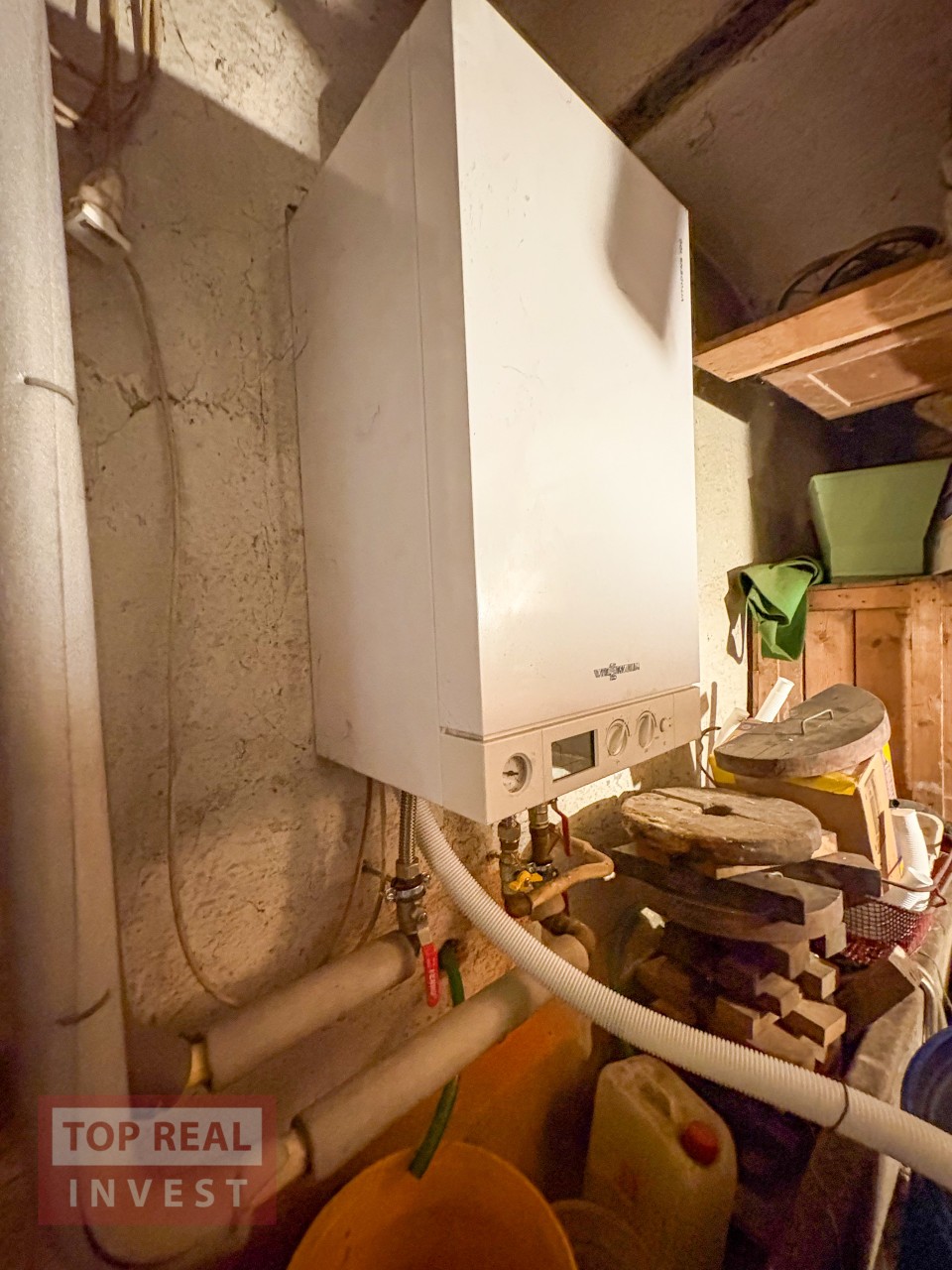 Vytápění je řešeno plynovým kotlem a kotlem na tuhá paliva i elektrickým kotlem, ohřev vody zajišťuje elektrický zásobník.