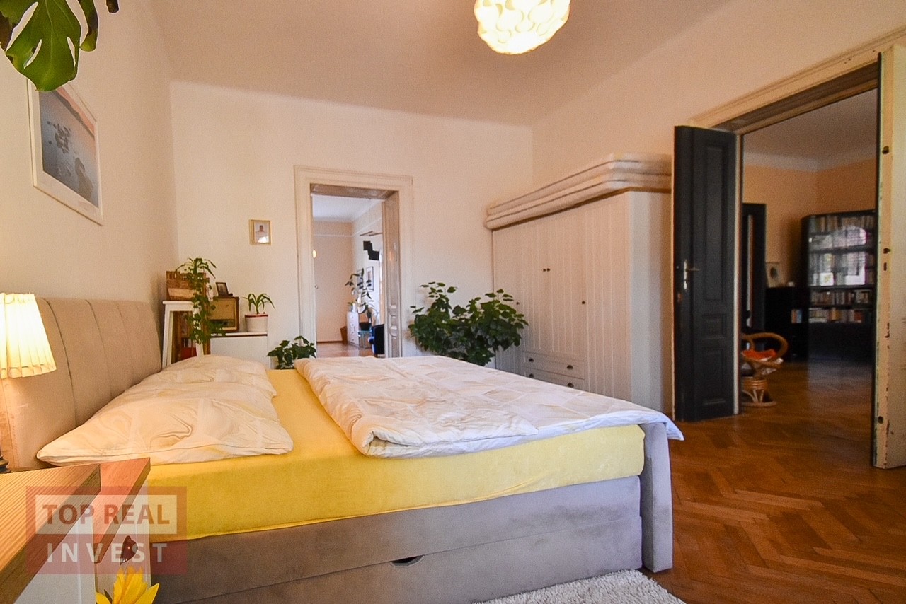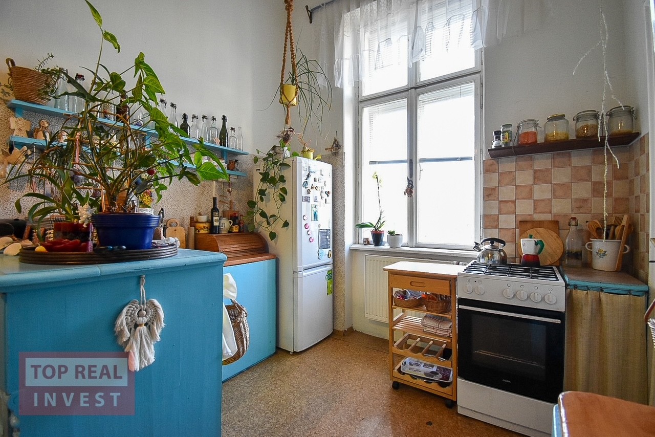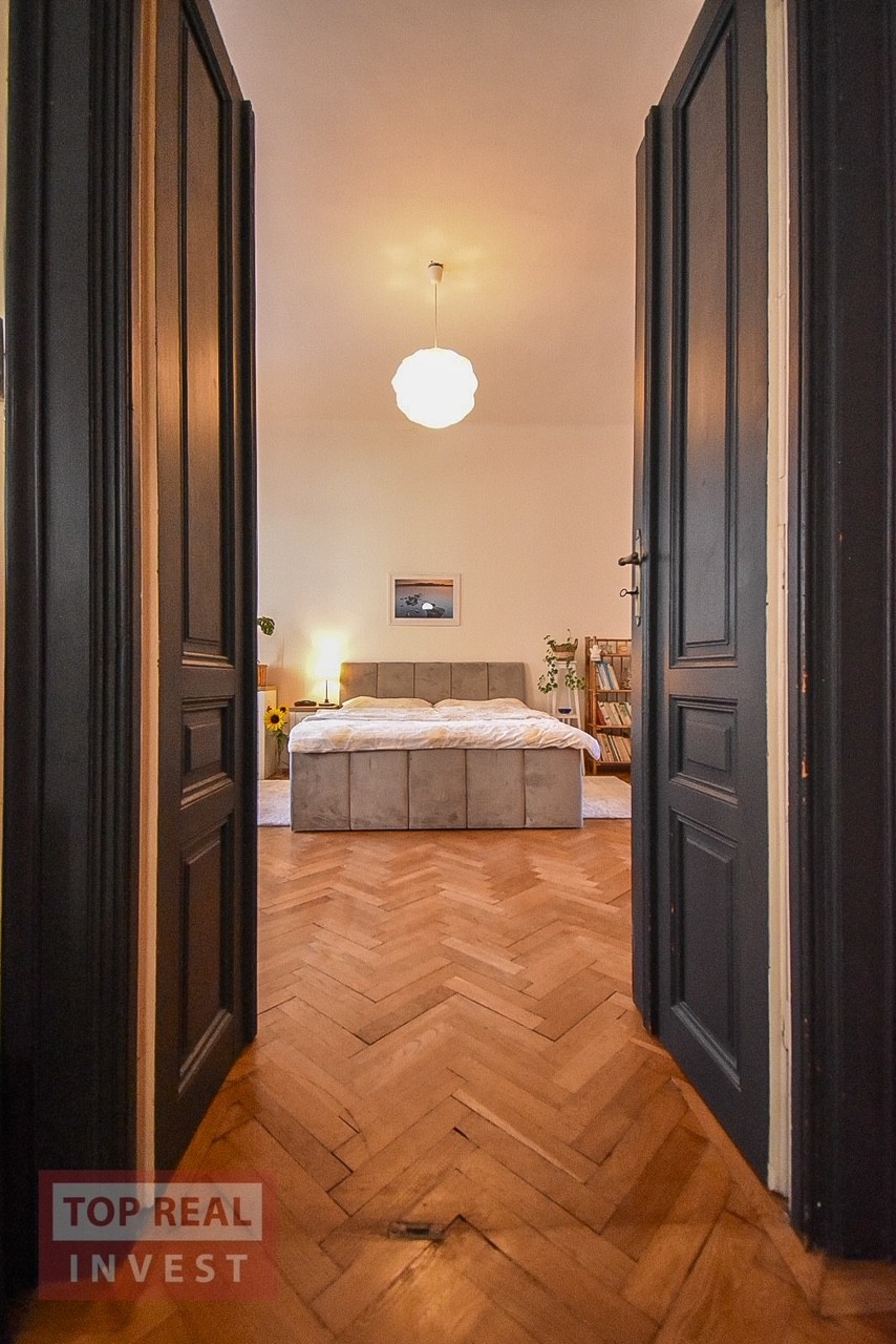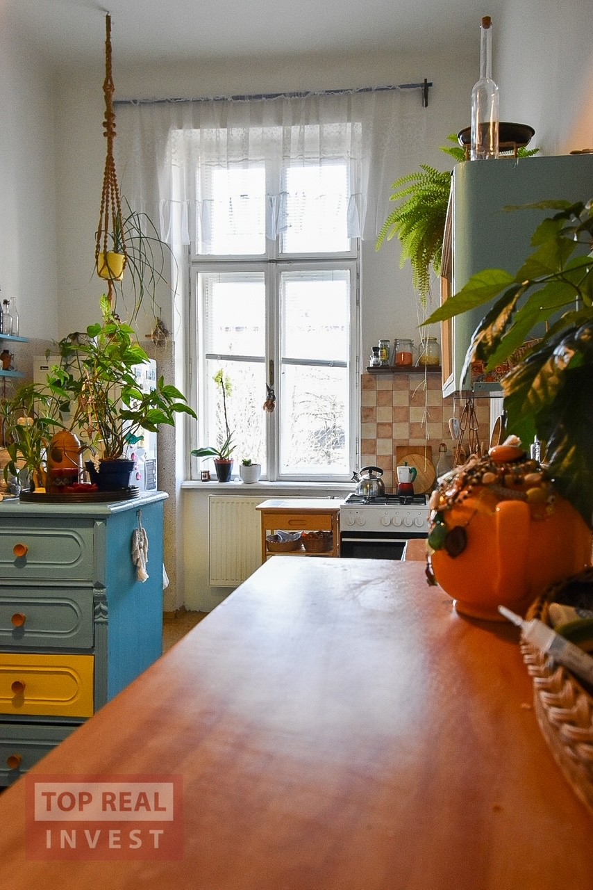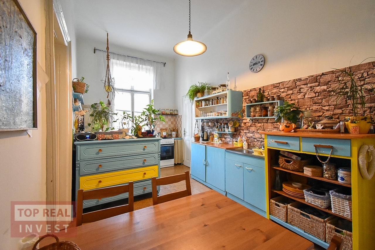 V bytě najdete původní prvky, které mu dodávají jedinečnou atmosféru. Vysoké stropy, dřevěné parkety a krásné dveře s dřevěnými obložkami vytvářejí příjemné prostředí. Elektrické rozvody jsou vedeny v mědi a vytápění je etážové plynové, což zajišťuje pohodlí. Okna jsou dřevěná, s jedinou výjimkou plastového okna v koupelně, kde je k dispozici vana pro příjemný relax. V bytě je dostatek prostoru, takže si můžete vychutnat jak útulné večery, tak i denní život v dostatečně prostorném prostředí.