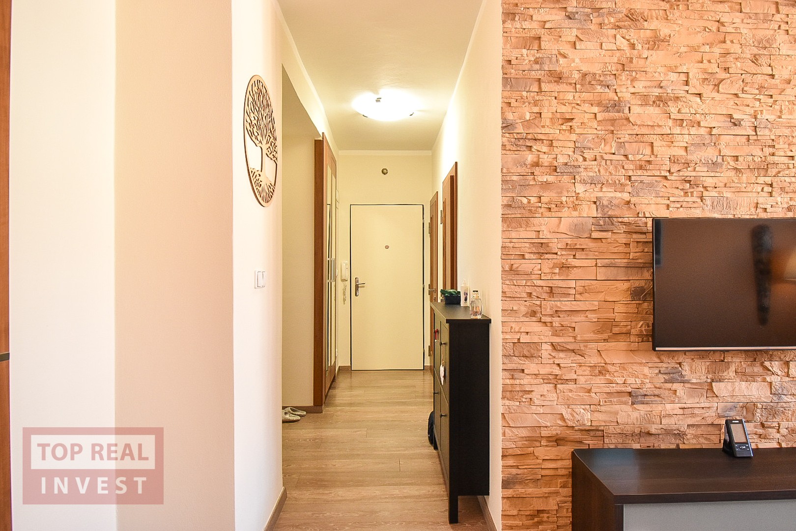 Byt je řešen vstupní chodbou s vestavěnou skříní, ze které se vstupuje do všech místností – obývacího pokoje s kuchyní, dvou samostatných pokojů, koupelny a samostatného WC. V jednom z pokojů je k dispozici další prostorná vestavěná skříň.