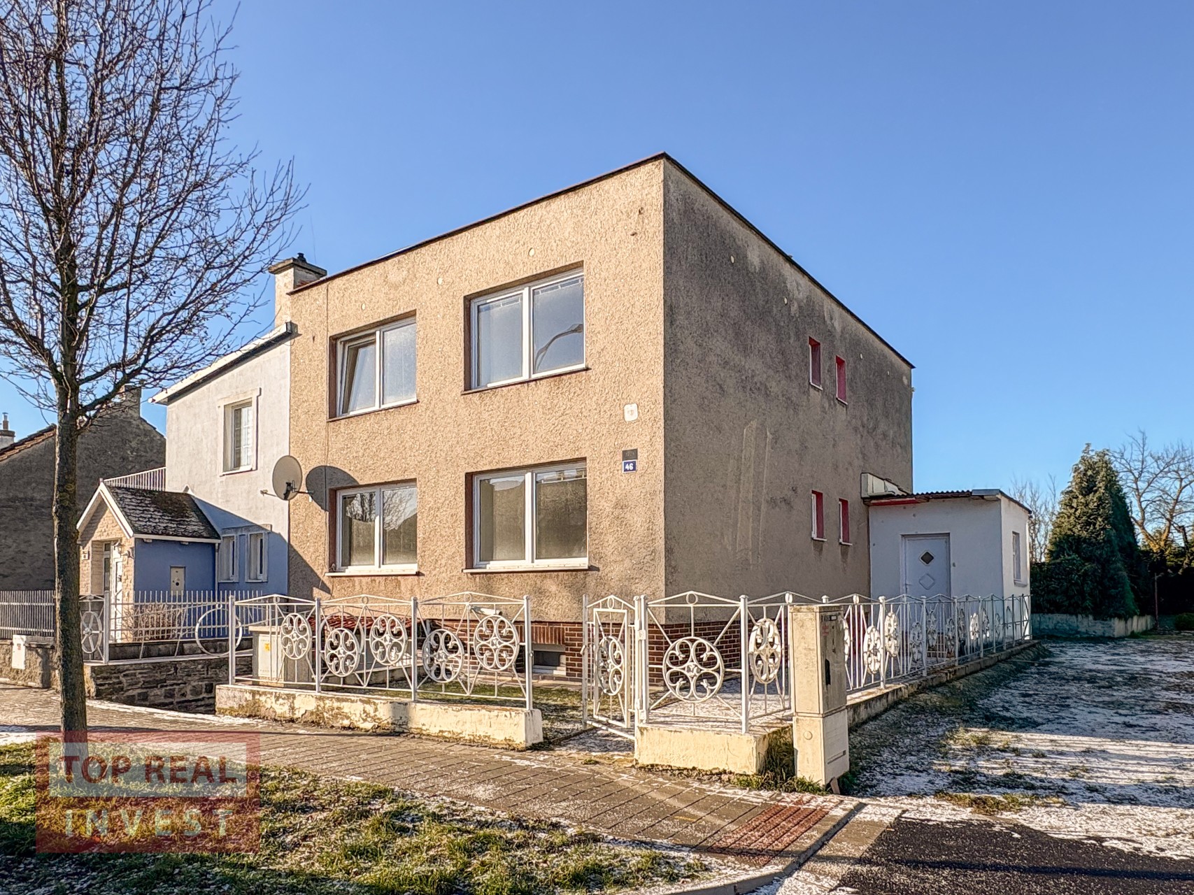 Dům stojí na rohovém pozemku s možností přístupu i z boční strany. Za domem se rozkládá prostorná zahrada, která je rozdělena na zatravněnou část u domu vhodnou pro posezení a relaxaci a dále na část s ovocnými stromy. Výhodou je, že za zahradou se již nenachází žádná další zástavba, pouze zeleň, což poskytuje vysokou míru soukromí a klidné prostředí. Technicky se jedná o cihlový dům s plastovými okny, pultovou střechou. Zastavěná plocha domu činí 108 m², celková výměra pozemku je 570 m², užitná plocha včetně sklepa je 229 m² a obytná plocha obou nadzemních podlaží je 155 m².