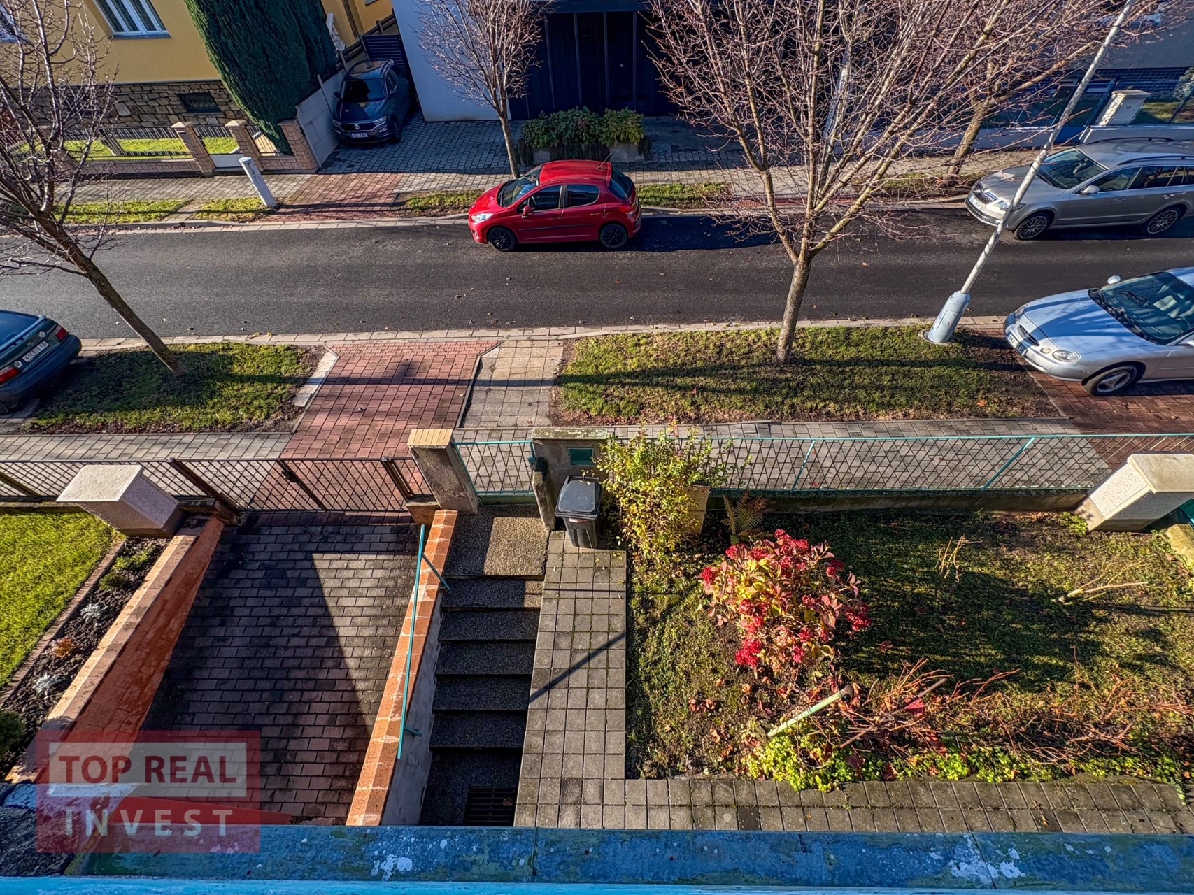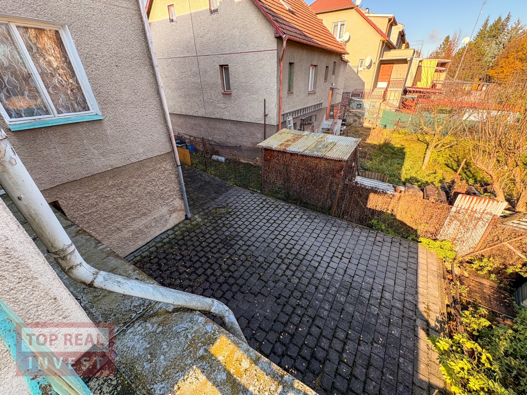 Dům je rohový, což je velká výhoda při obslužnosti kolem domu a také disponuje garáží ve dvoře, dalším parkovacím prostorem na pozemku za branou a možností parkování na ulici Štursova.