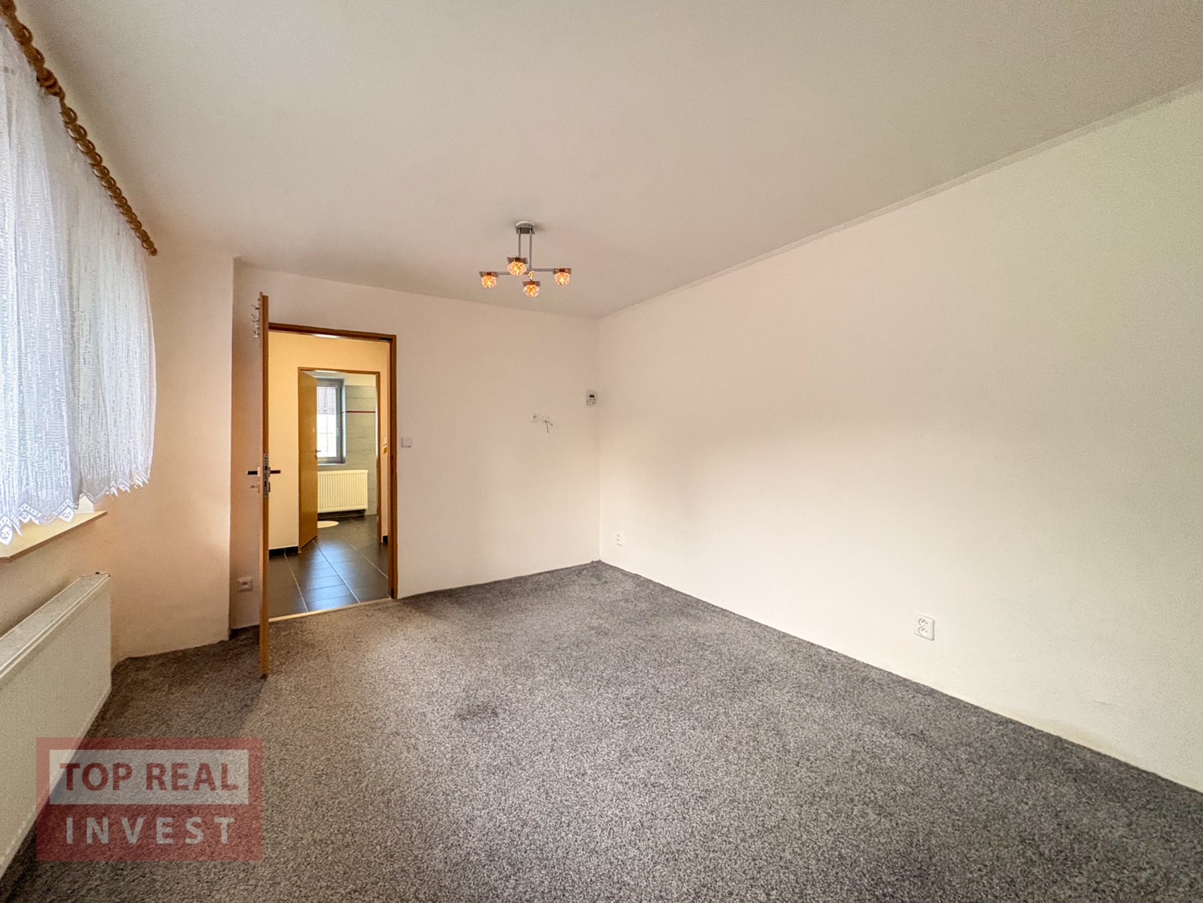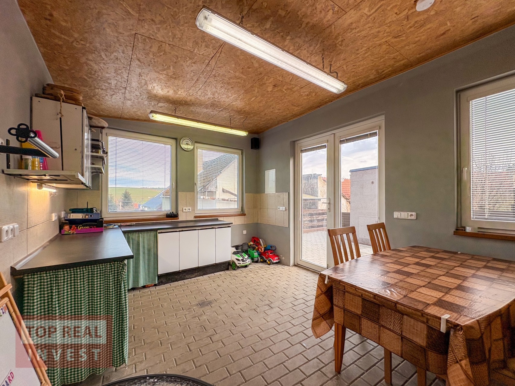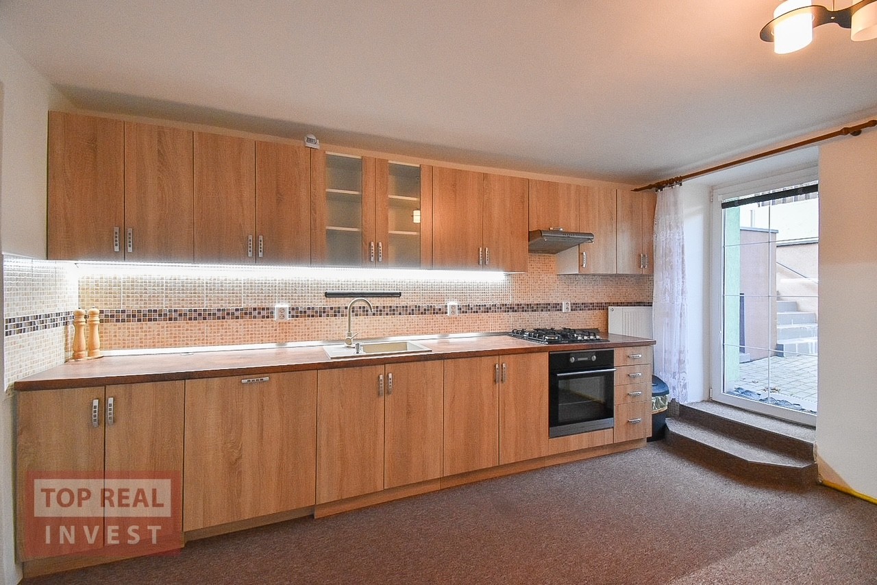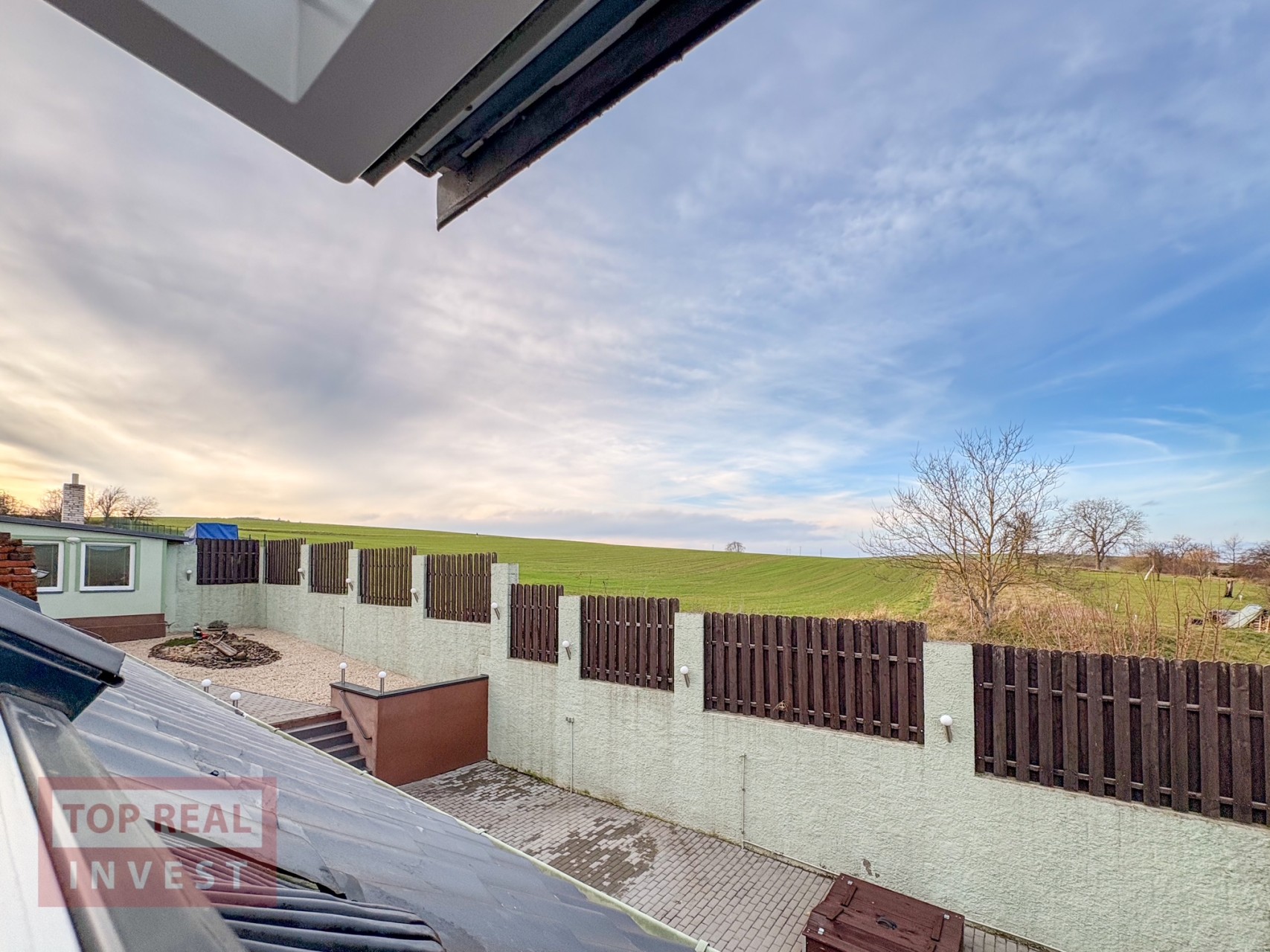 Dům prošel velmi důkladnou a zdařilou rekonstrukcí, díky které dnes nabízí moderní, funkční a příjemně členitý obytný prostor. V prvním nadzemním podlaží se nachází zádveří, ze kterého se vstupuje do kuchyně. Ta je světlá, prakticky řešená a disponuje přímým výstupem na vydlážděný dvůr, což oceníte při stolování venku i při každodenním provozu domácnosti. Kuchyně je vybavena vestavěnými spotřebiči – elektrická trouba a indukční deska. Na kuchyni navazuje průchozí obývací pokoj, který tvoří přirozené centrum domu. Dále se v přízemí nachází samostatný pokoj se šatnou, ideální jako ložnice, pracovna či pokoj pro hosty. Dispozici doplňuje chodba se schodištěm vedoucím do horního patra a prostorná koupelna vybavená rohovou vanou a toaletou.