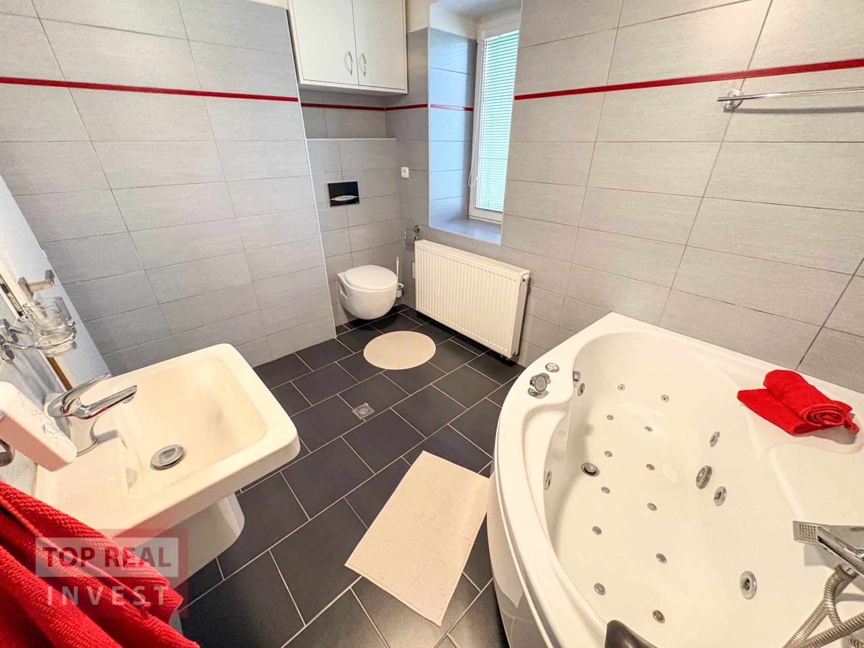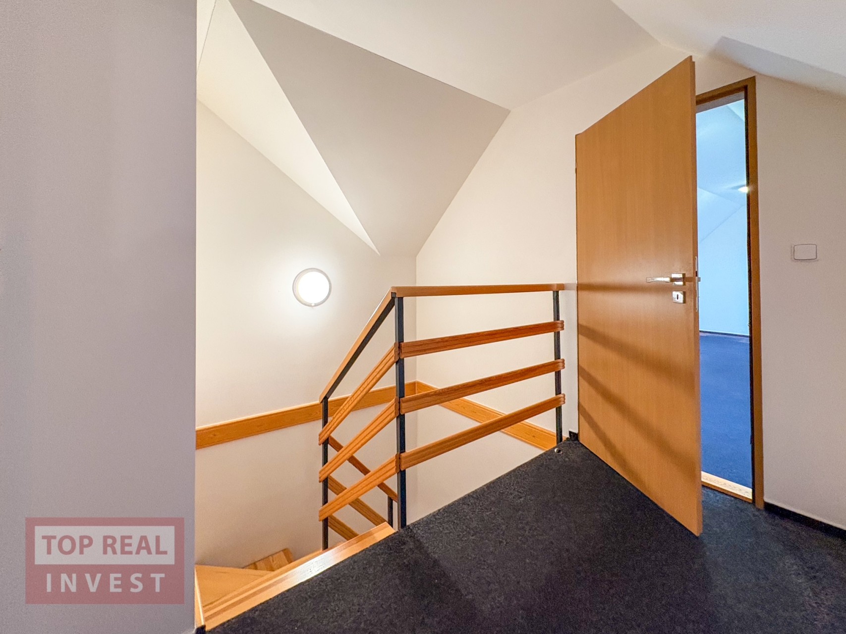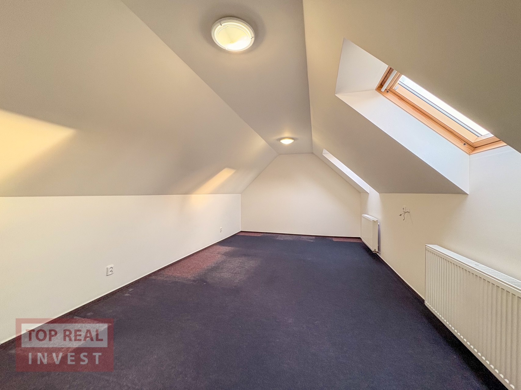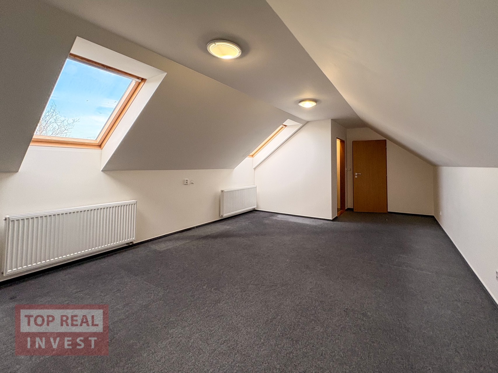 Druhé nadzemní podlaží nabízí klidovou zónu domácnosti. Nacházejí se zde dva prostorné podkrovní pokoje, které poskytují dostatek místa jak pro odpočinek, tak pro pracovní či dětský koutek. Patro dále disponuje velkou šatnou v jednom z pokojů a druhou koupelnou se sprchovým koutem a WC, což výrazně zvyšuje komfort každodenního života.