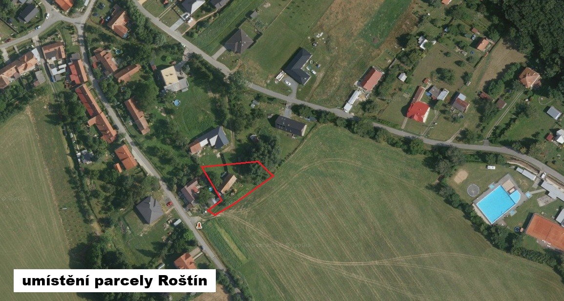 Slunný pozemek poskytne přibližně 1.400 m2, výhled na Brdo a okolí Roštína. Přímo na pozemku stojí stodala, i ona může být dle dnešních trendů, přestavěna a přízpůsobena k bydlení nebo může sloužit jako garáž, letní kuchyň, odpočinkové místo, variant je plno. U pozemku se nachází elektřina, vodovod, odpady musejí být vyřešeny jímkou nebo čističkou odpadních vod. Příjezd k parcele je po asfaltové komunikaci. Velkou zajímavostí a výhodou této obce je slámovod, který je možno zavést na pozemek. Slámovod slouží k ekonomickému vytápění.