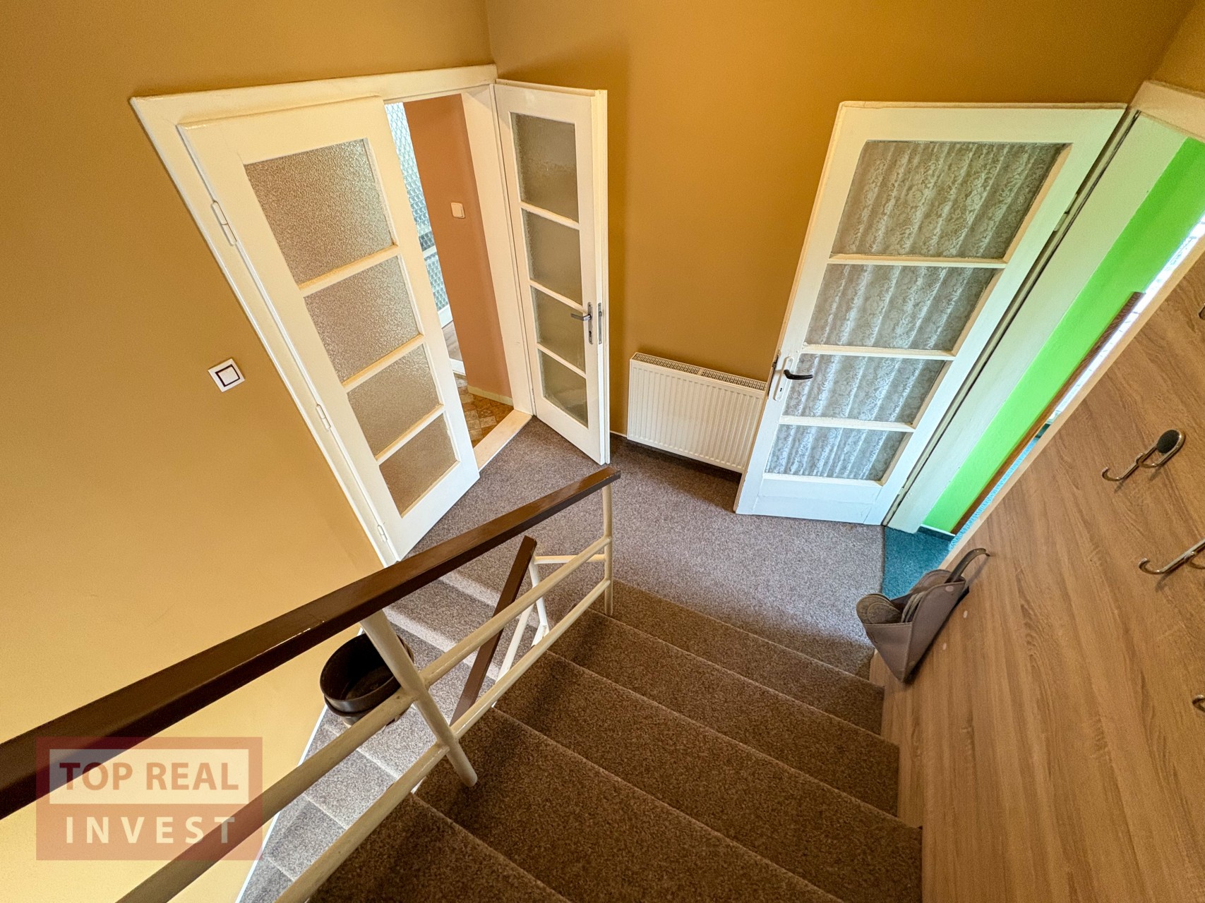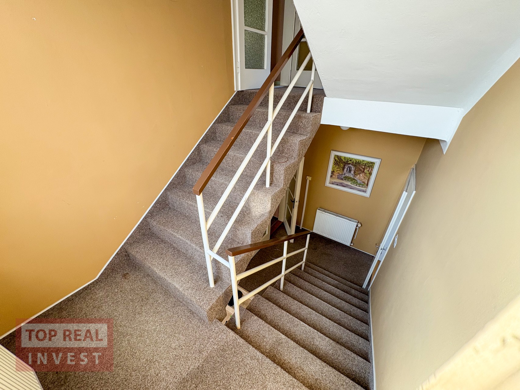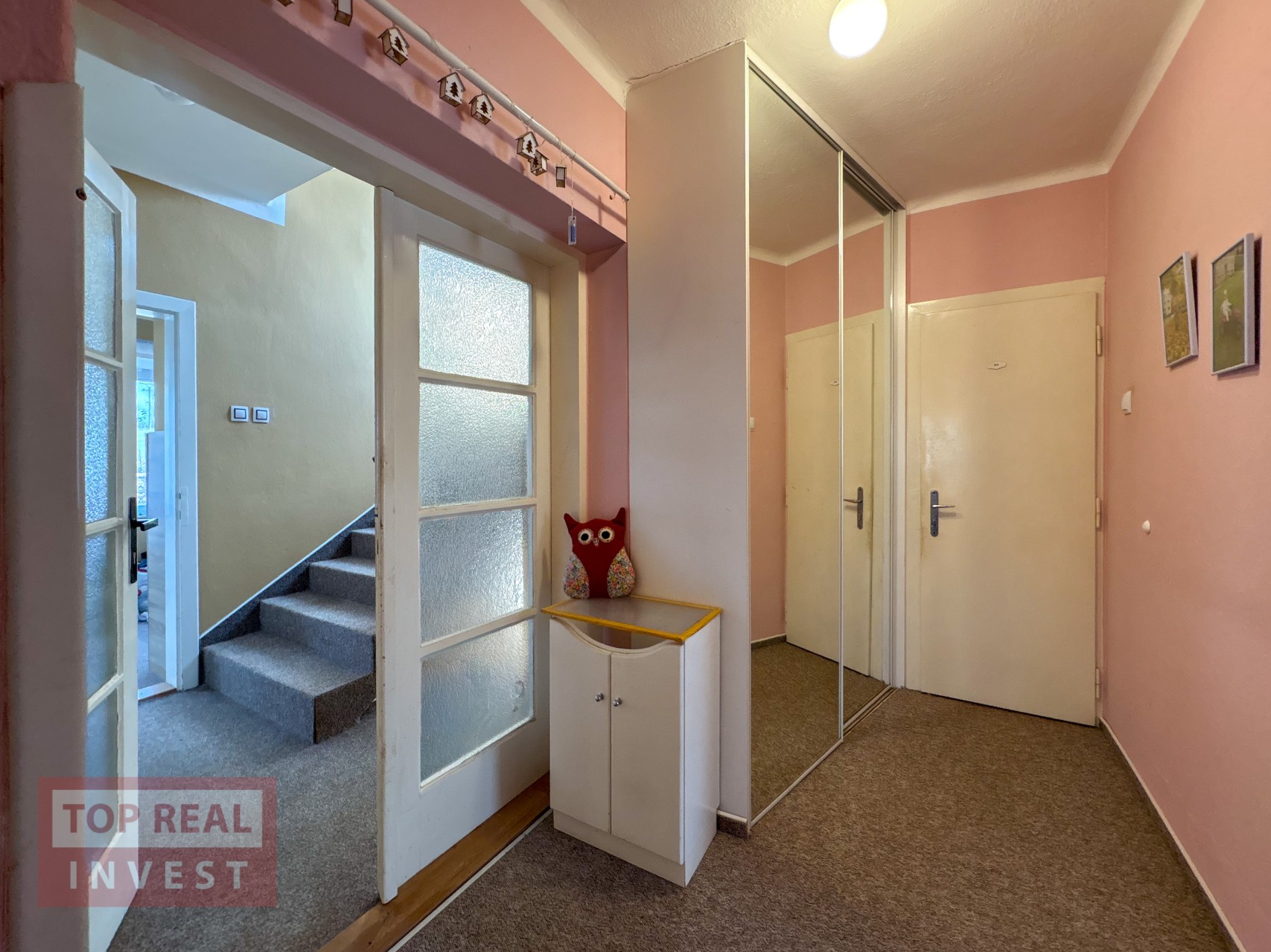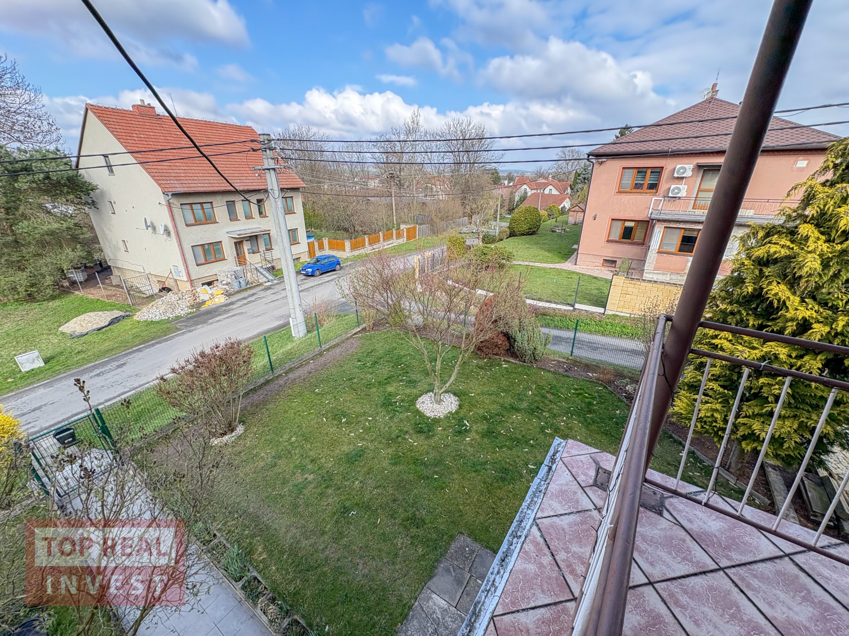 Spodní byt nabízí terasu k posezení, horní patro má balkón a šatnu. Součástí domu je také prostorná půda a sklep.