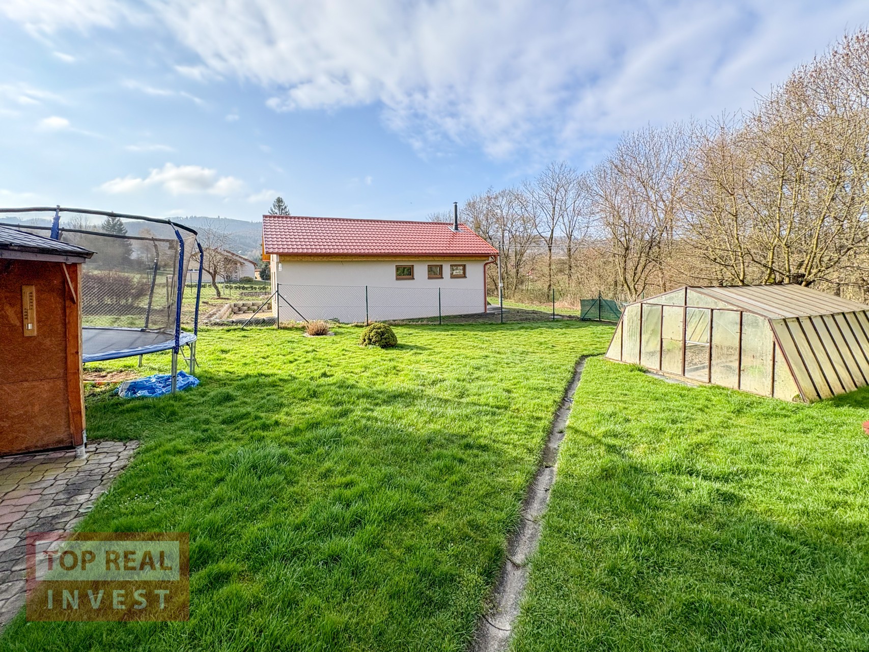 Za domem se nachází praktické zázemí – kůlna, dílna a garáž, které poskytují dostatek prostoru pro uskladnění i práci. Na pozemku je možné parkování za bránou. Velkou výhodou je také zahrada se skleníkem, pergolou a dostatkem prostoru pro odpočinek i pěstování, která nabízí soukromí a klid.