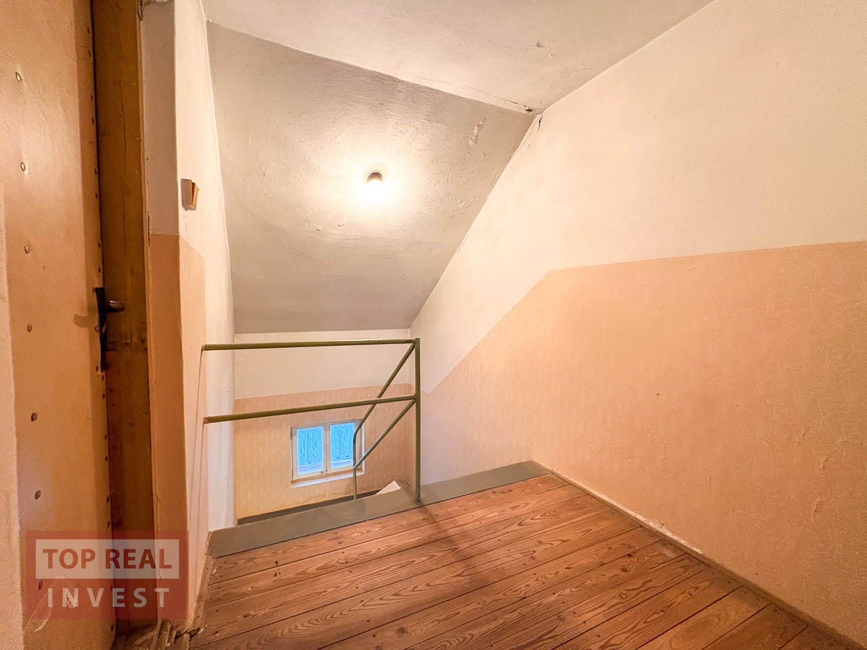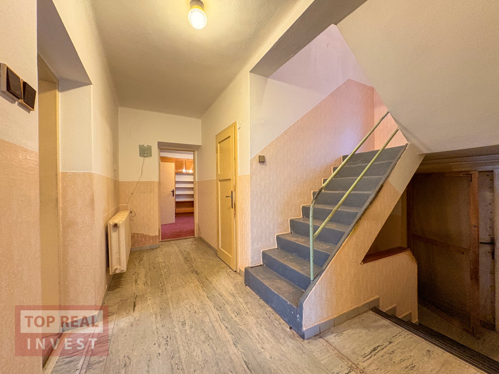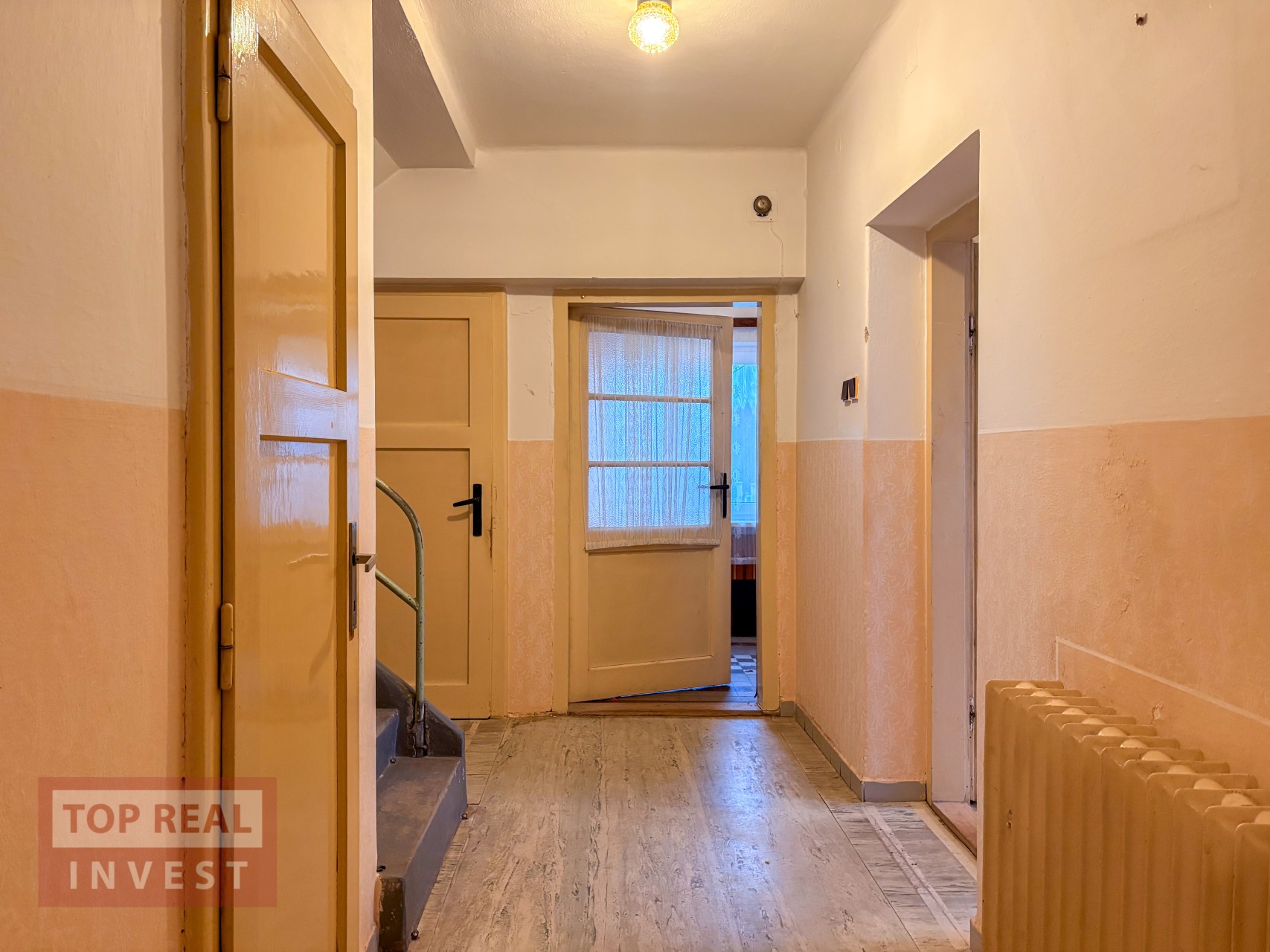 Dispozičně je dům velmi dobře řešen. V přízemí se nachází prostorné zádveří, ze kterého se vstupuje do chodby se schodištěm do patra. Z chodby je přístup do kuchyně, samostatného pokoje, šatny, koupelny s vanou, samostatného WC, dále do sklepa a také na zahradu kolem domu. Další z pokojů v přízemí je situován vedle kuchyně. V patře domu se nachází samostatný pokoj a vstup na prostornou půdu.