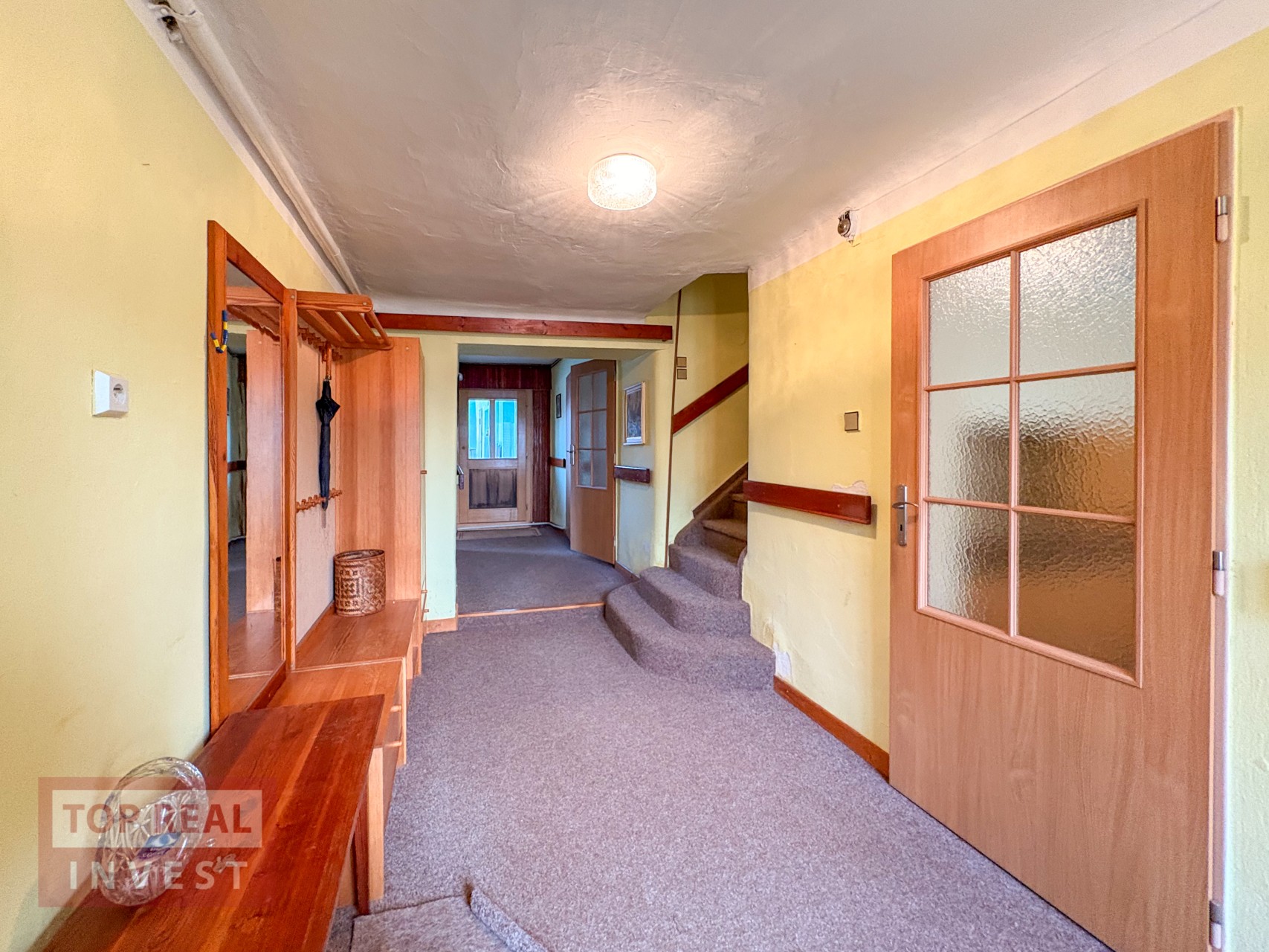 Dispozičně je dům rozdělen prostornou vstupní chodbou se schodištěm do patra a přímým vstupem na zahradu.