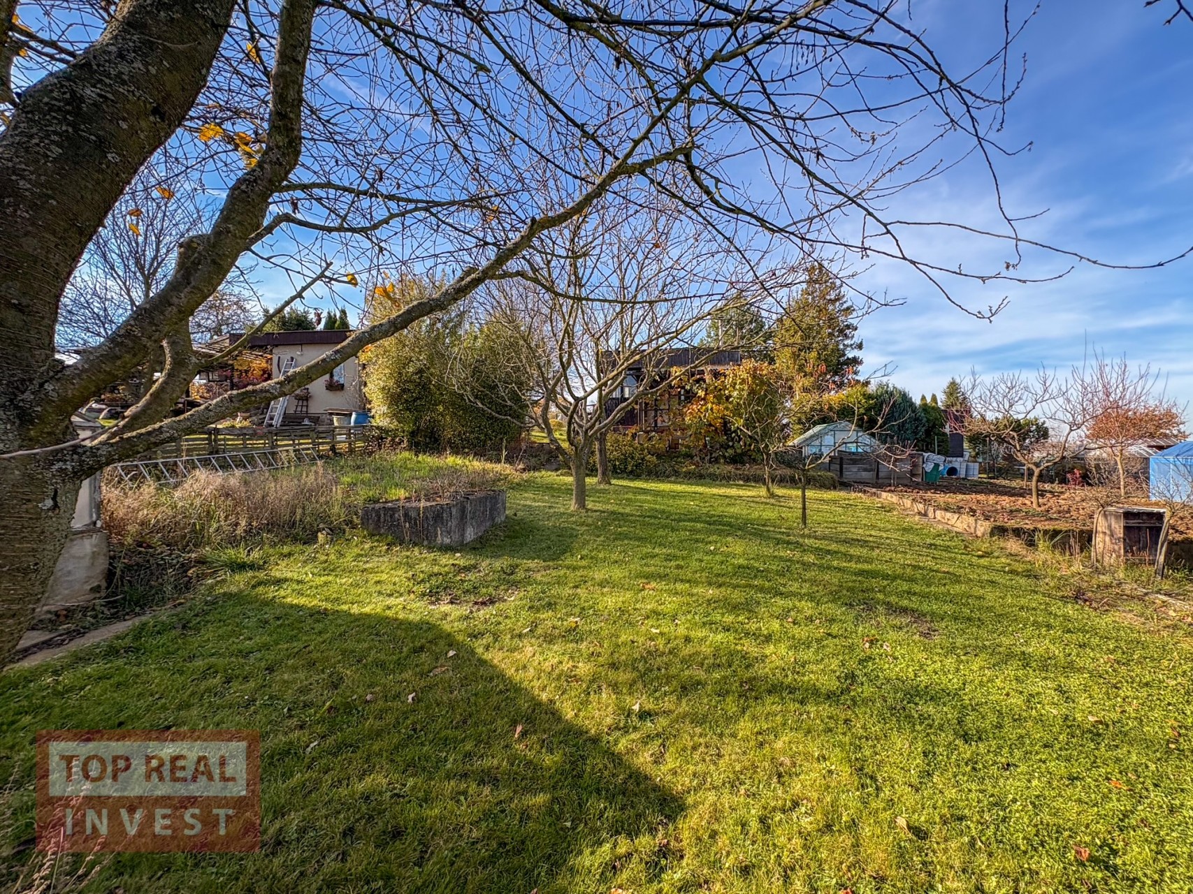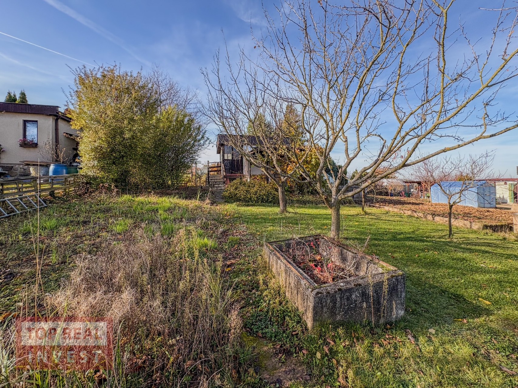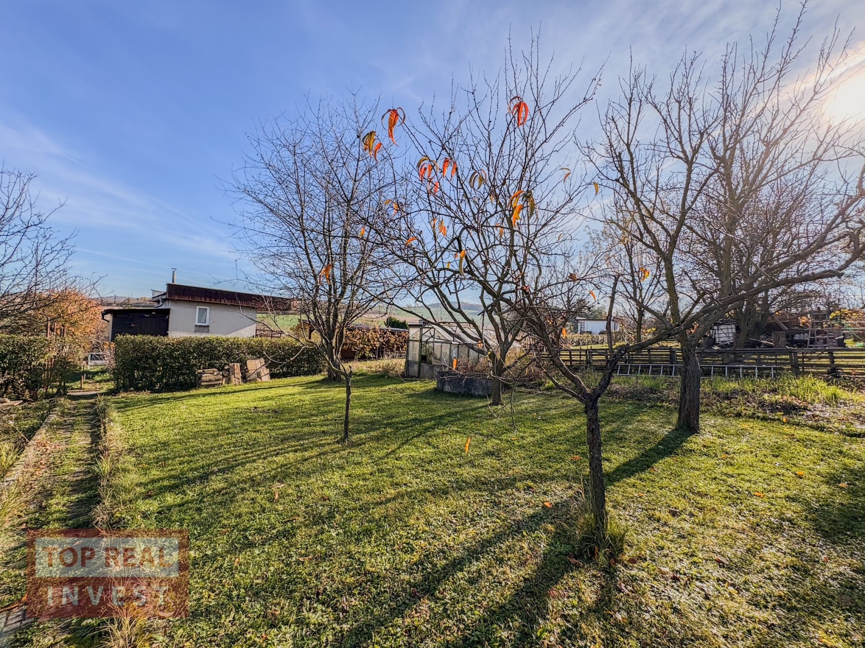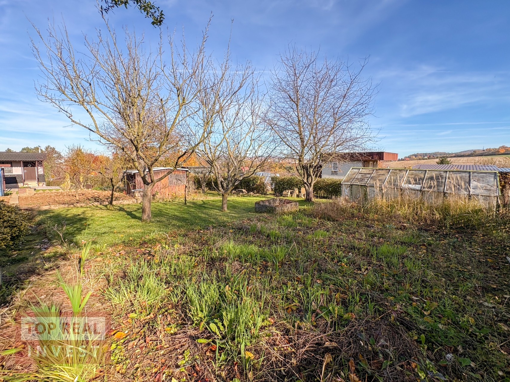 Díky vzrostlému živému plotu si užijete soukromí a pohodu. Pozemek je rovinatý, slunný a má úrodnou půdu, která nebyla hnojena chemicky.