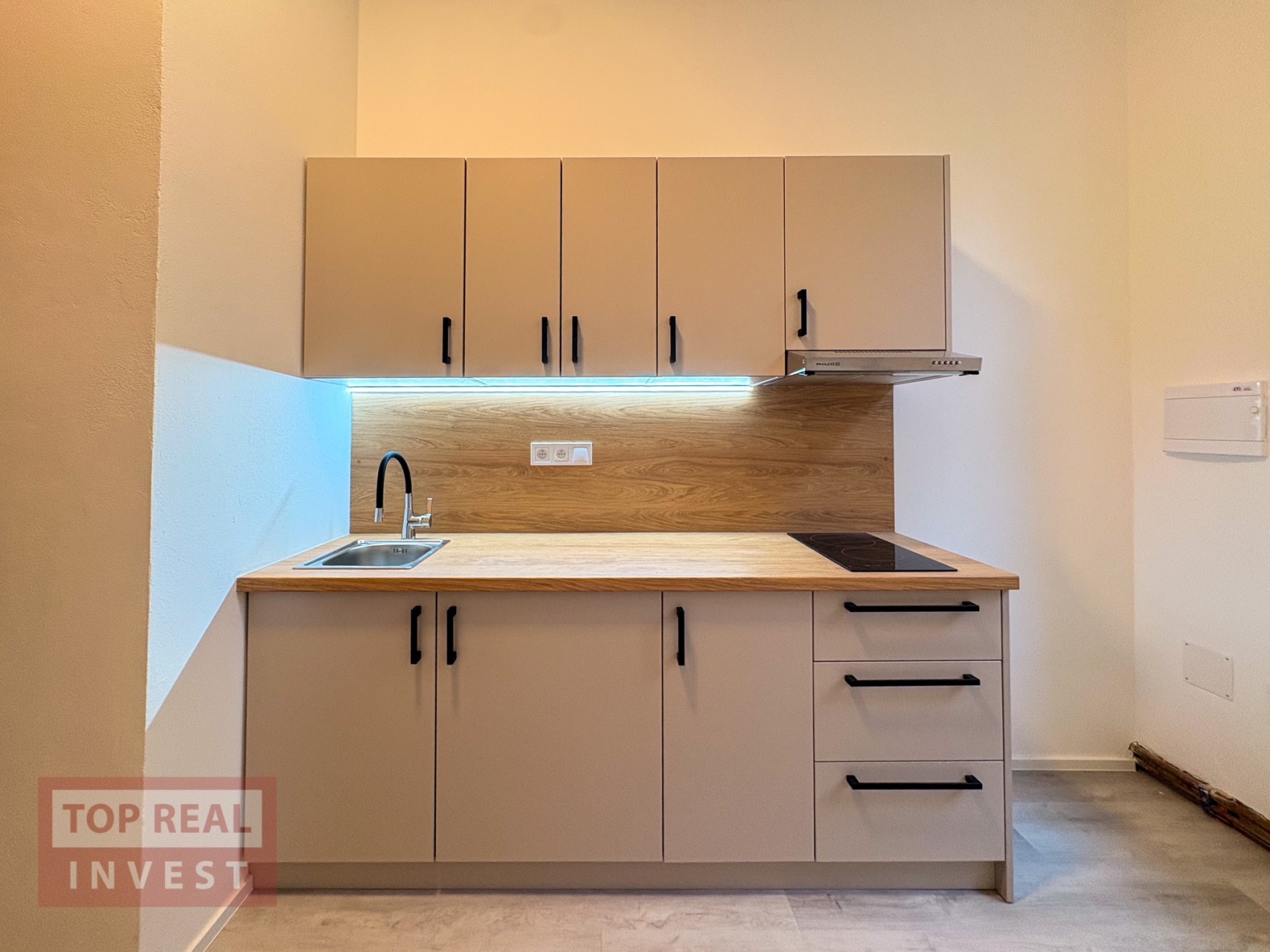 Byt je kompletně vybaven moderní kuchyňskou linkou, která nabízí vše potřebné pro pohodlné vaření:
