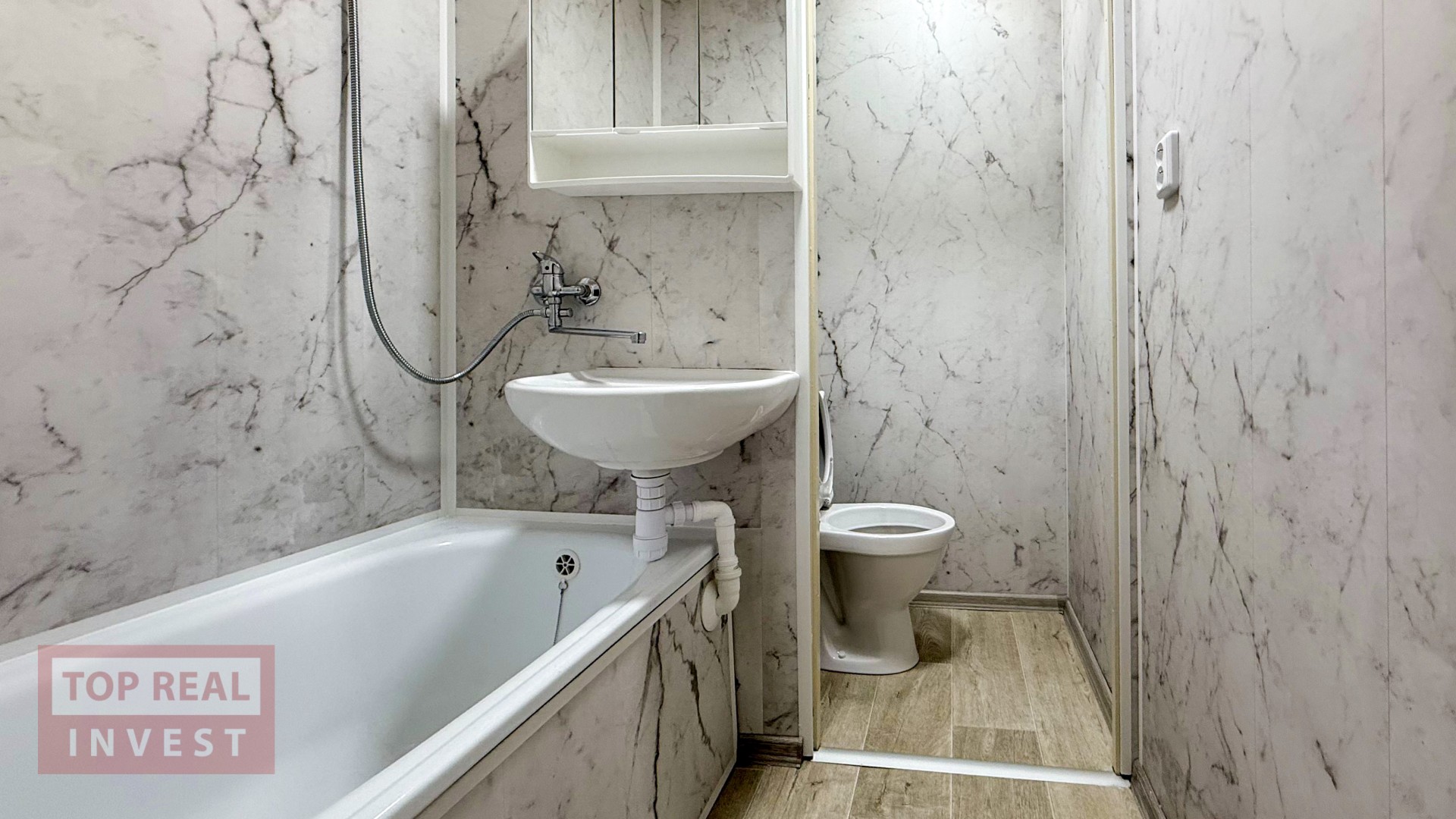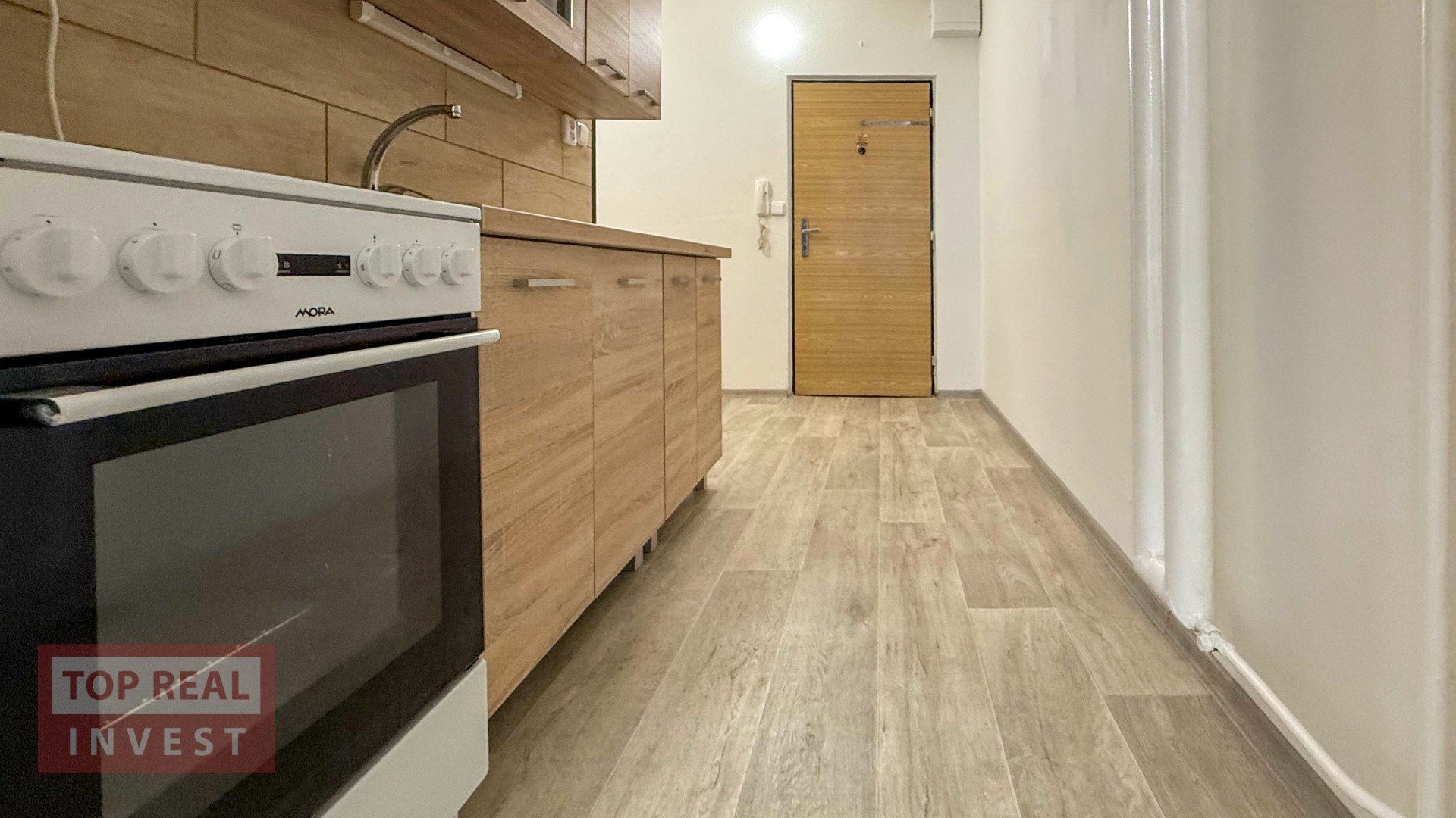 Garsoniéra poskytuje k užívání 28m2. Byt je v dobrém stavu, prošel renovací. V koupelně je k dispozici menší vana, v kuchyni je elektrický sporák s troubou. Byt je bez balkońu, celý dům prošel revitalizací.