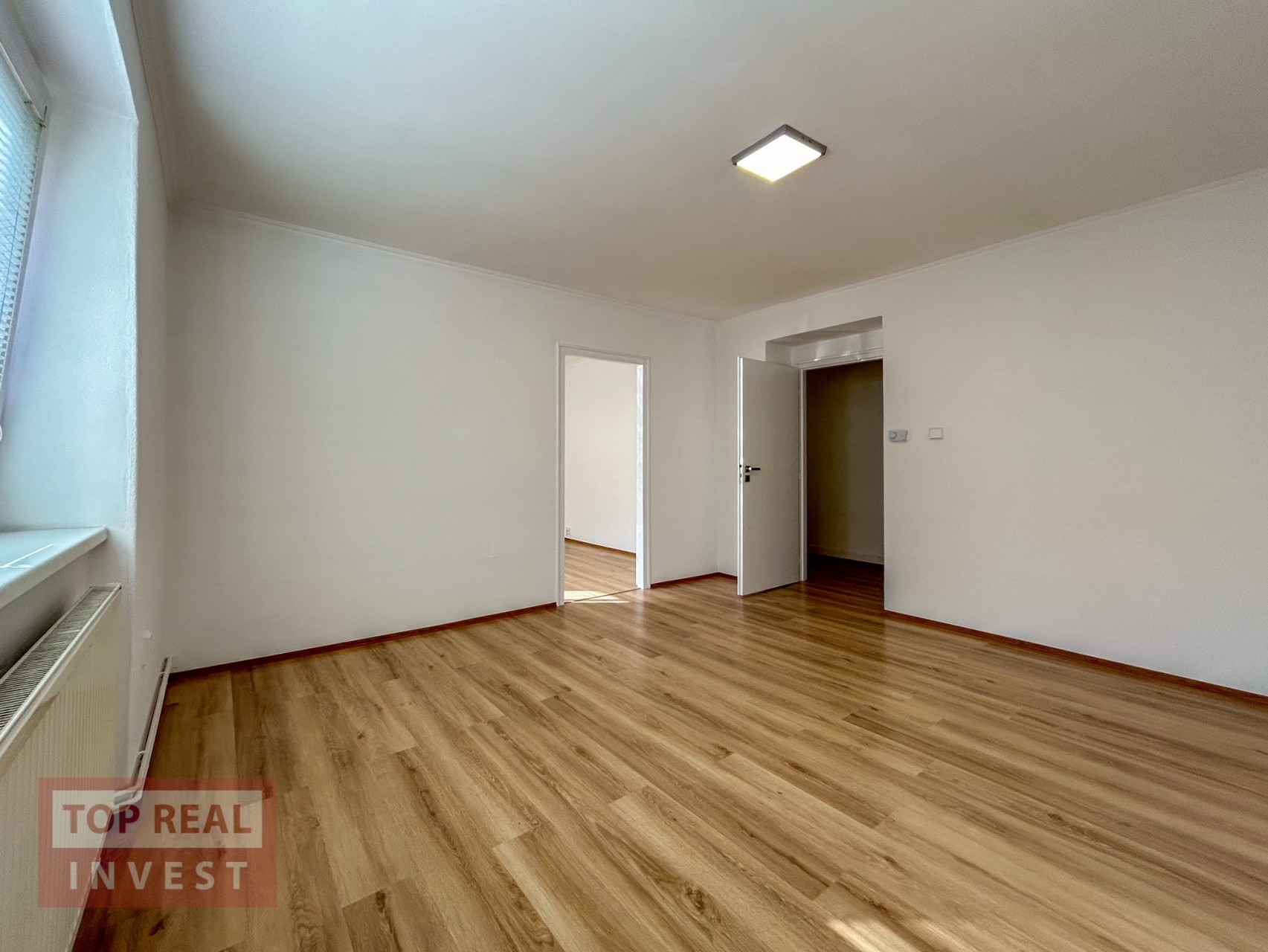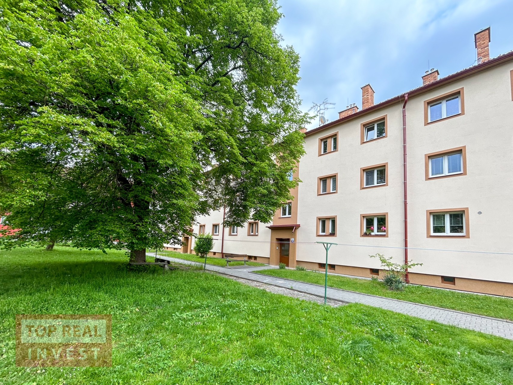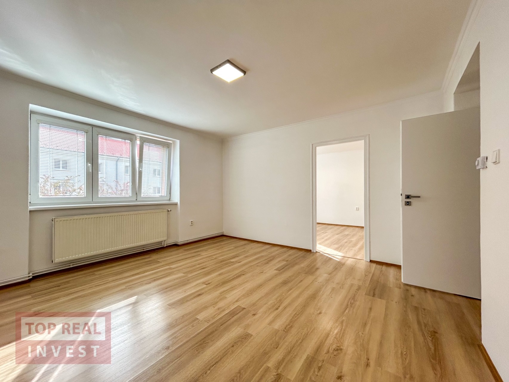 Celková plocha bytu činí 56 m2 a nachází se na 2.NP (první patro). Byt propojuje prostorná vstupní chodba, ze které se vchází do průchozího pokoje, kuchyně, prostorné koupelny spojené s WC. Velkým plusem tohoto prostorného bytu je i špajz v bytě. Další pokoj se nachází za obývacím pokojem. V koupelně je k dispozici vana. Kuchyně je vybavena samostatně stojícím plynovým sporákem s elektrickou troubou. V bytě byly položeny nové podlahy, vymalováno a instalovaná nová, moderní kuchyňská linka. K bytu patří sklep.
