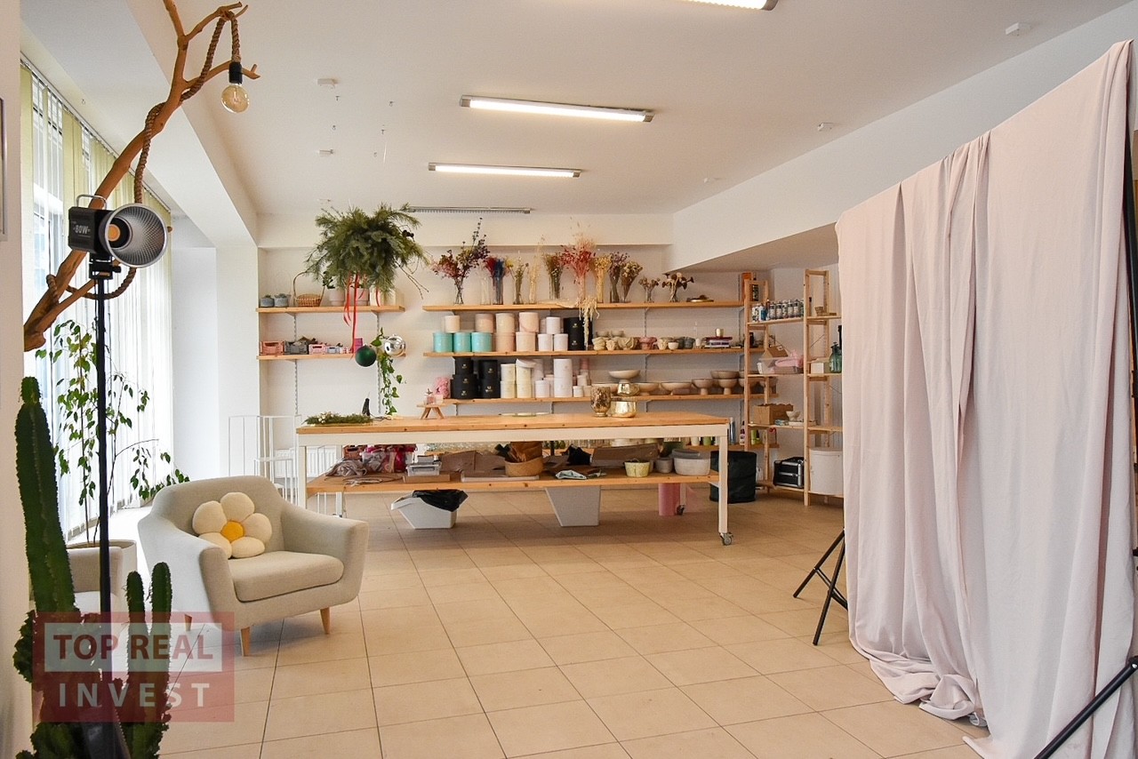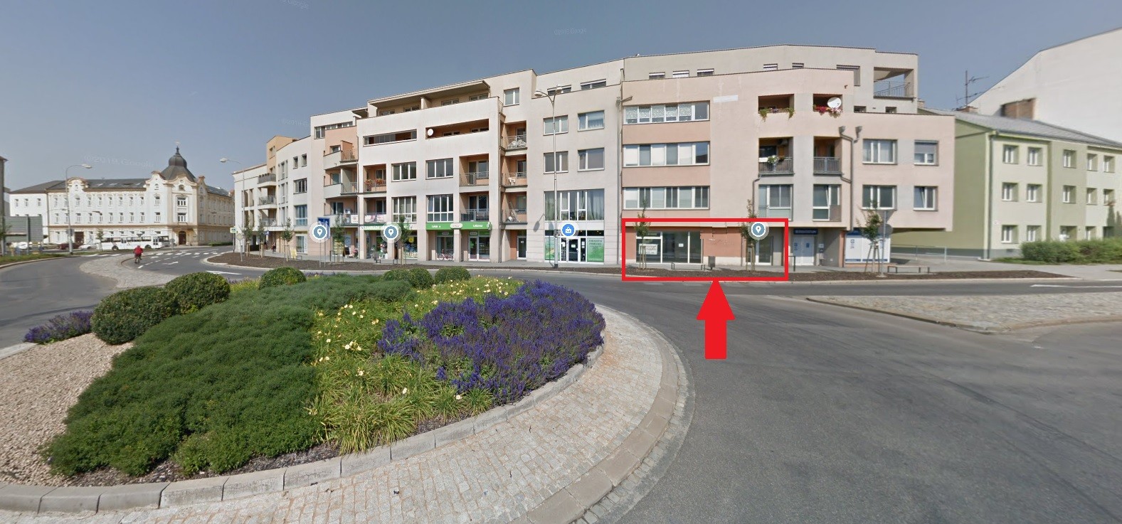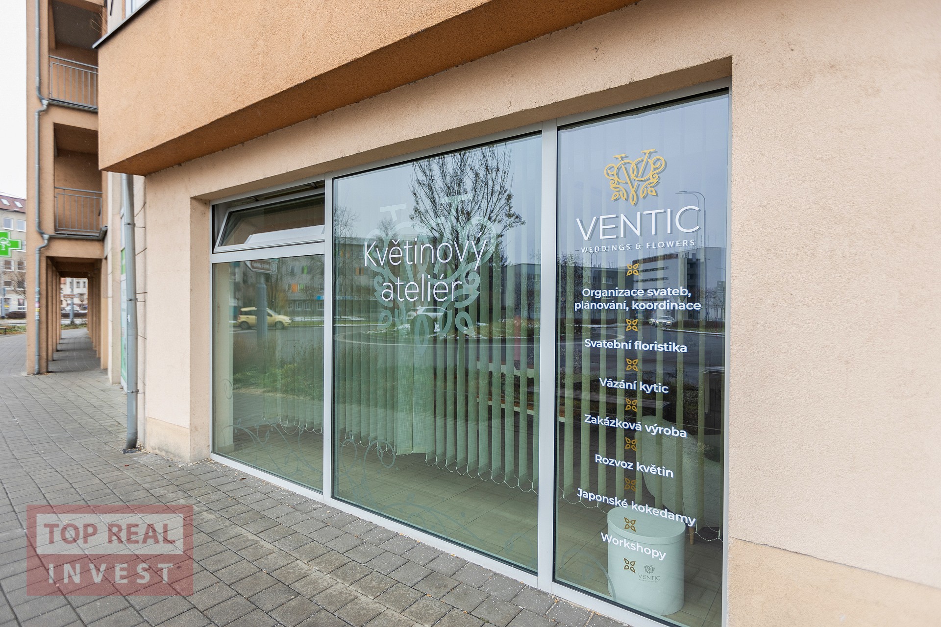 Nebytový prostor nabízí k užívání 88,3m2 s velkou prosklenou výlohou. Obchodní prostor se skládá s: prodejny 78,70m2; skladu 5,85m2; menší před-chodby a samostatné WC 3,75m2.