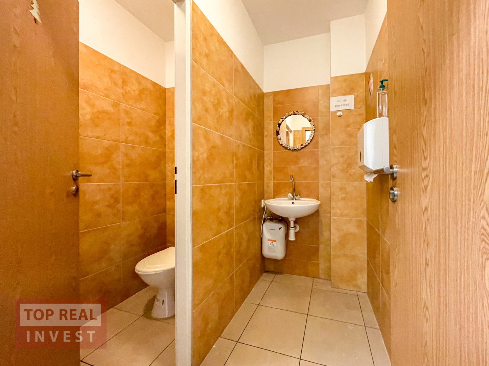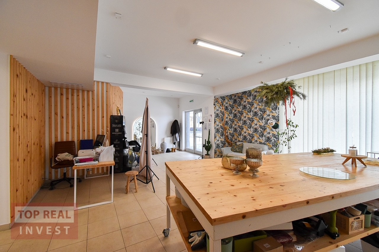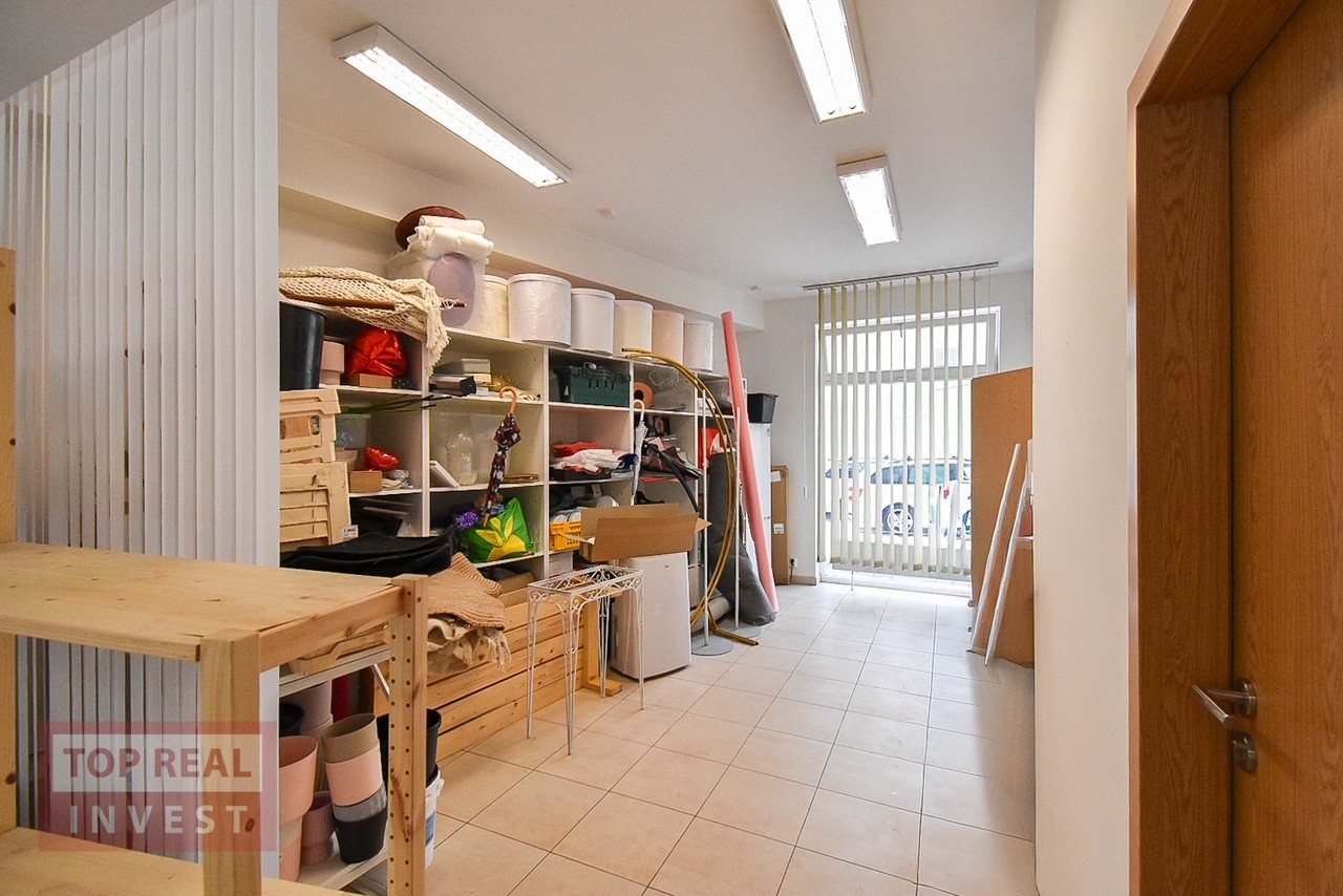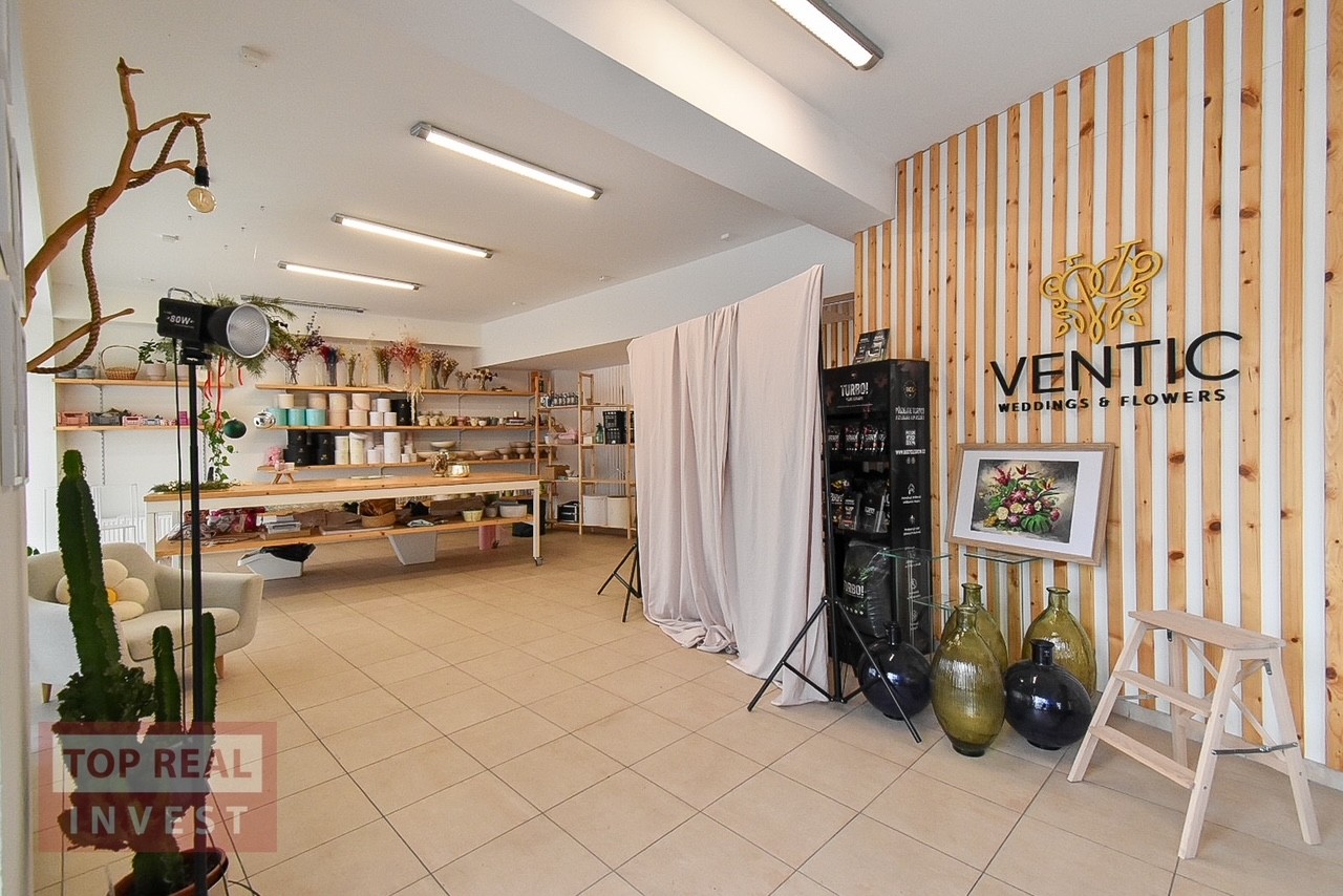 Nebytový prostor nabízí k užívání 88,3m2 s velkou prosklenou výlohou. Obchodní prostor se skládá s: prodejny 78,70m2; skladu 5,85m2; menší před-chodby a samostatné WC 3,75m2.