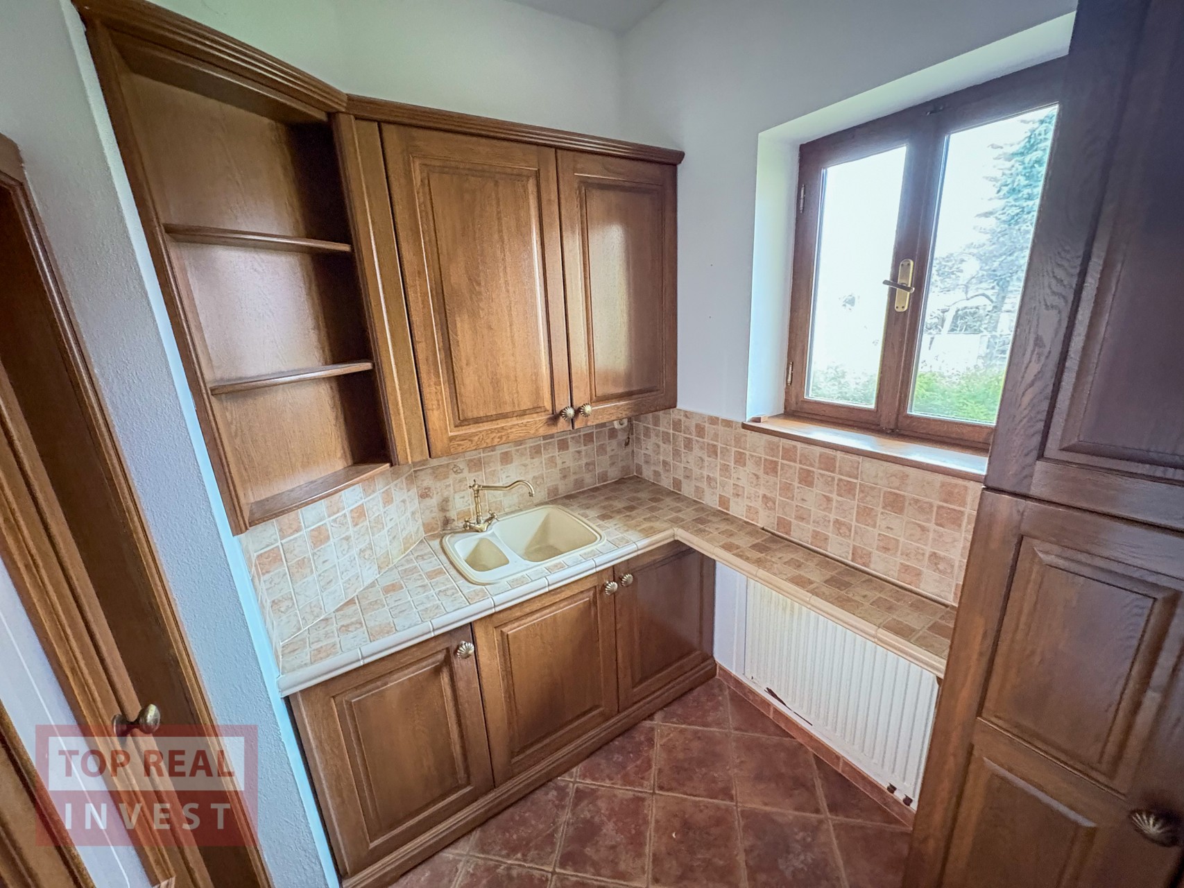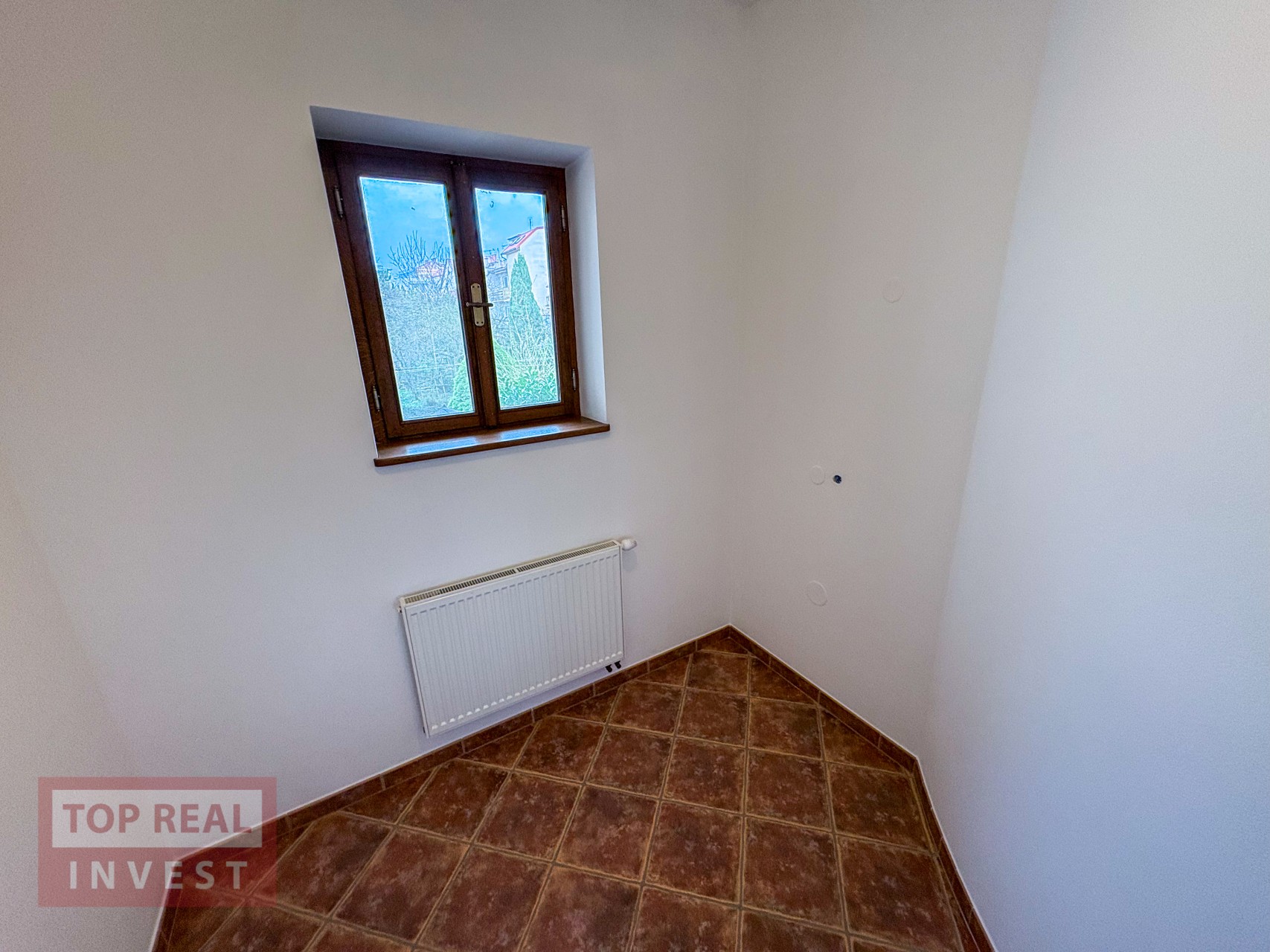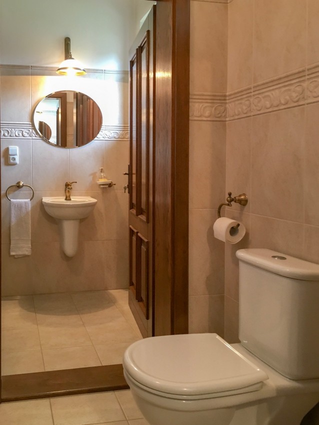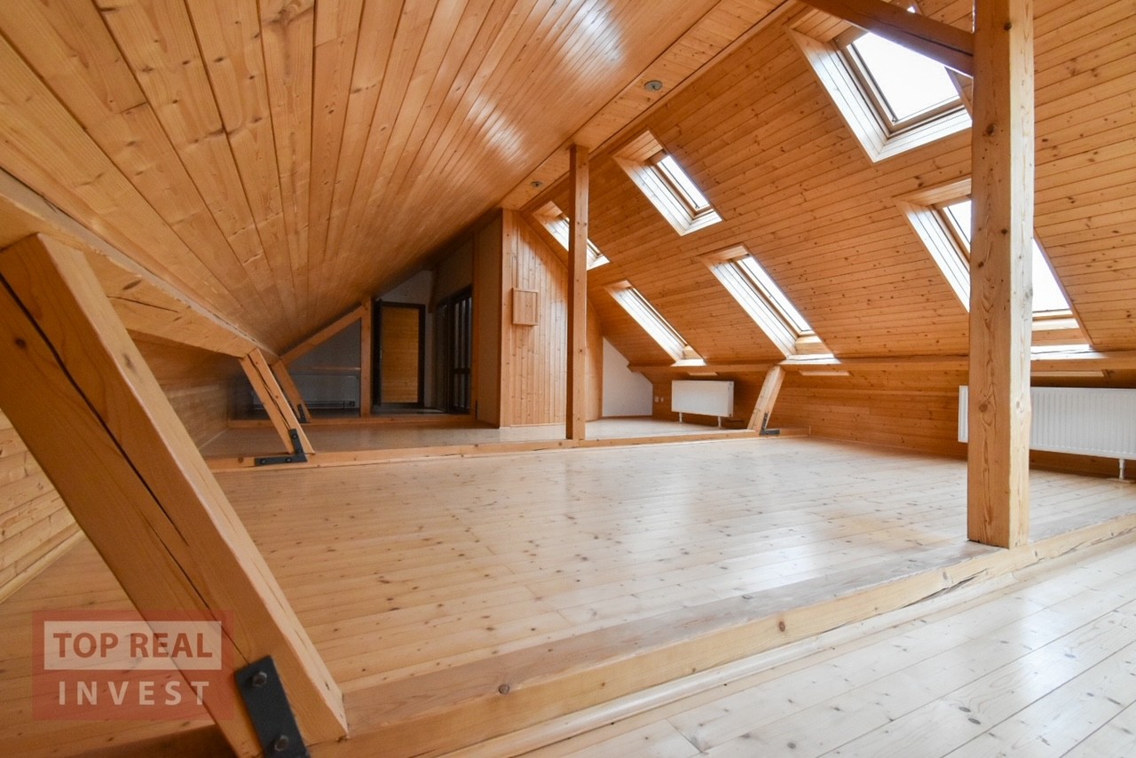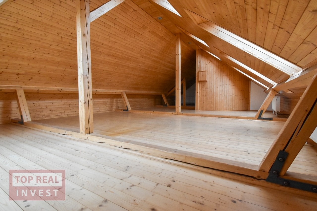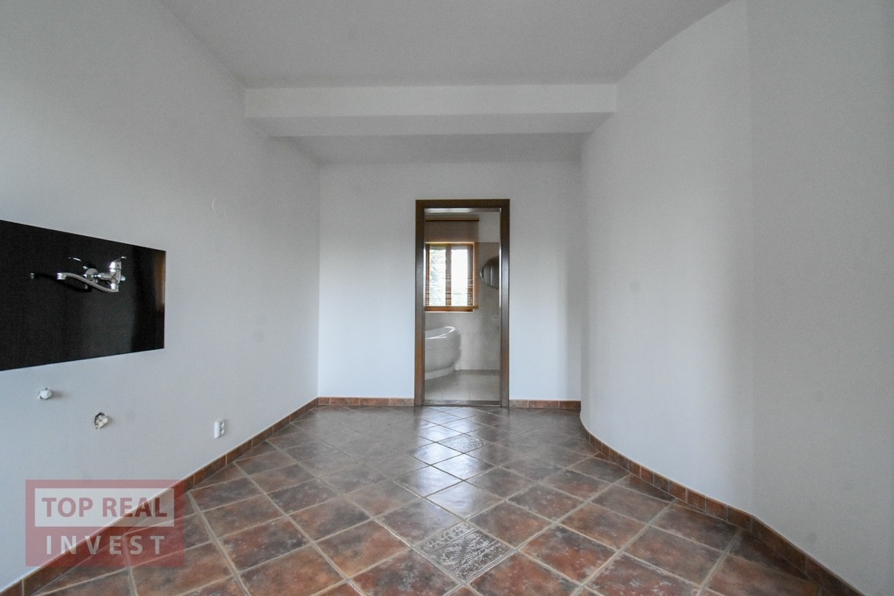 Druhé, nadzemní podlaží je víc soukromé, s místem pro instalaci kuchyňského koutu, prostornou koupelnou s vanou, samostatným WC a velkoryse prostorným obývacím pokojem. (vhodné například pro fyzioterapeuta)