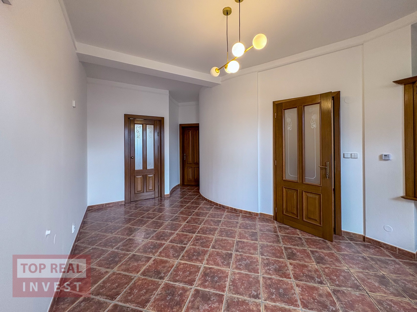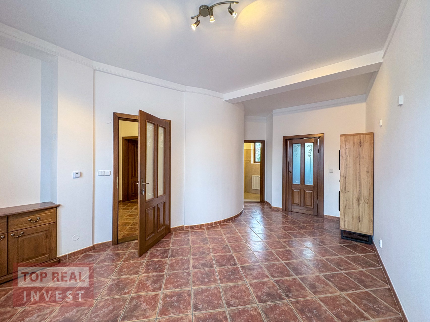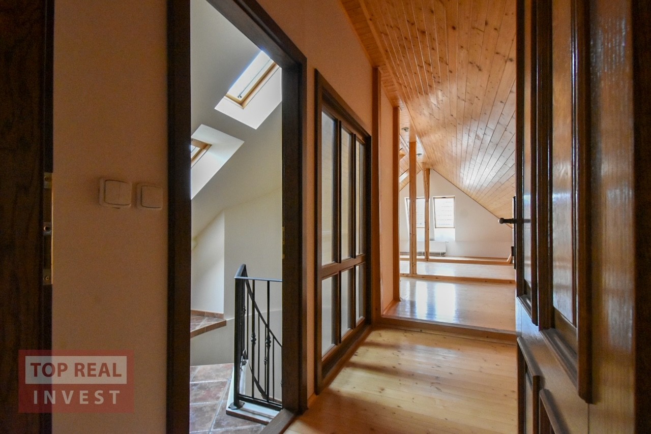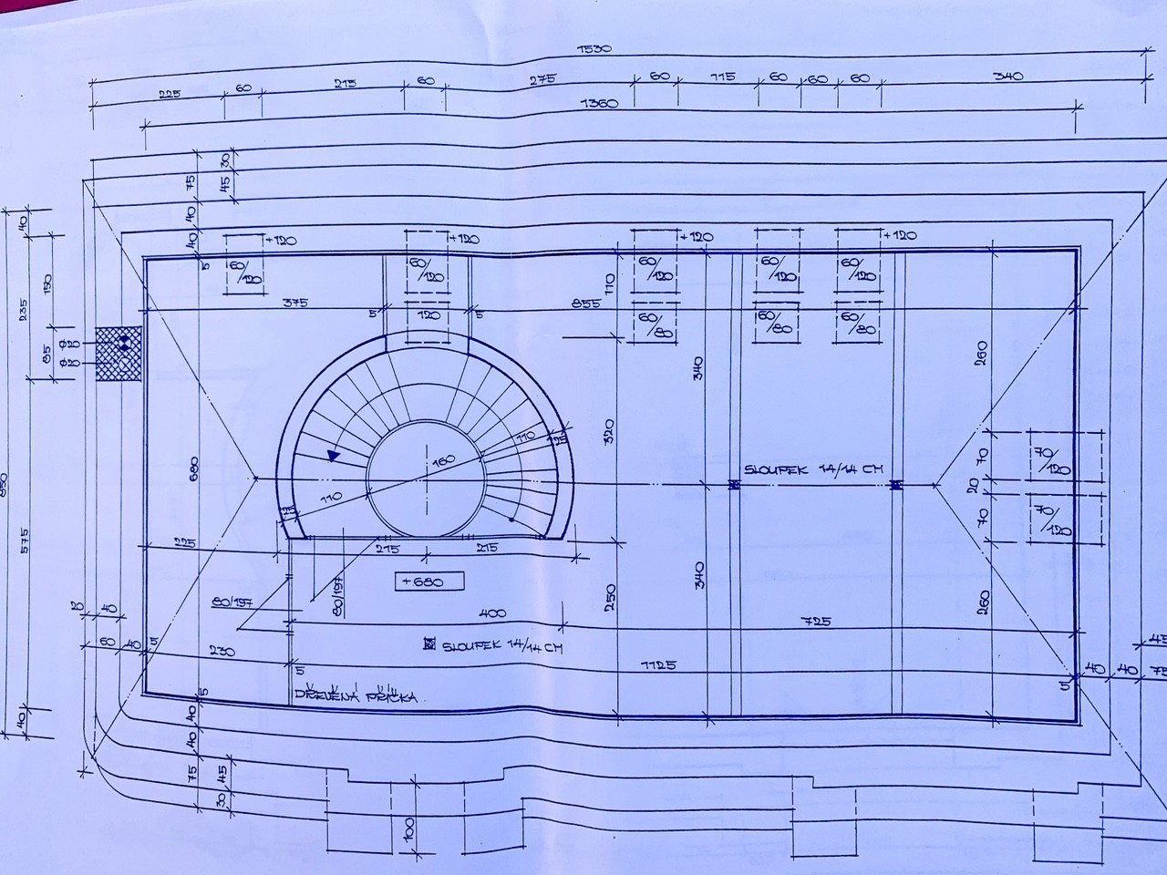 Po vstupu do domu, Vás upoutá členění domu na levou a pravou stranu, kde středem prochází úchvatné, otevřené schodiště, které se stáčí kolem sochy a propojuje všechny patra domu. Světlo do prostoru schodiště a vstupní haly, prochází skrz střešní okna.